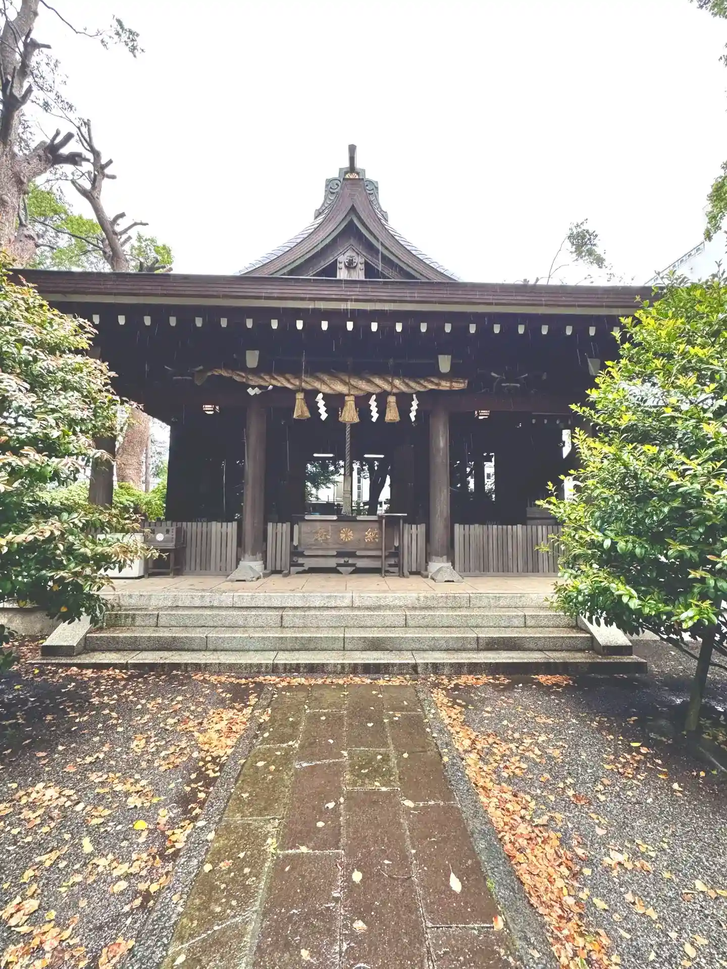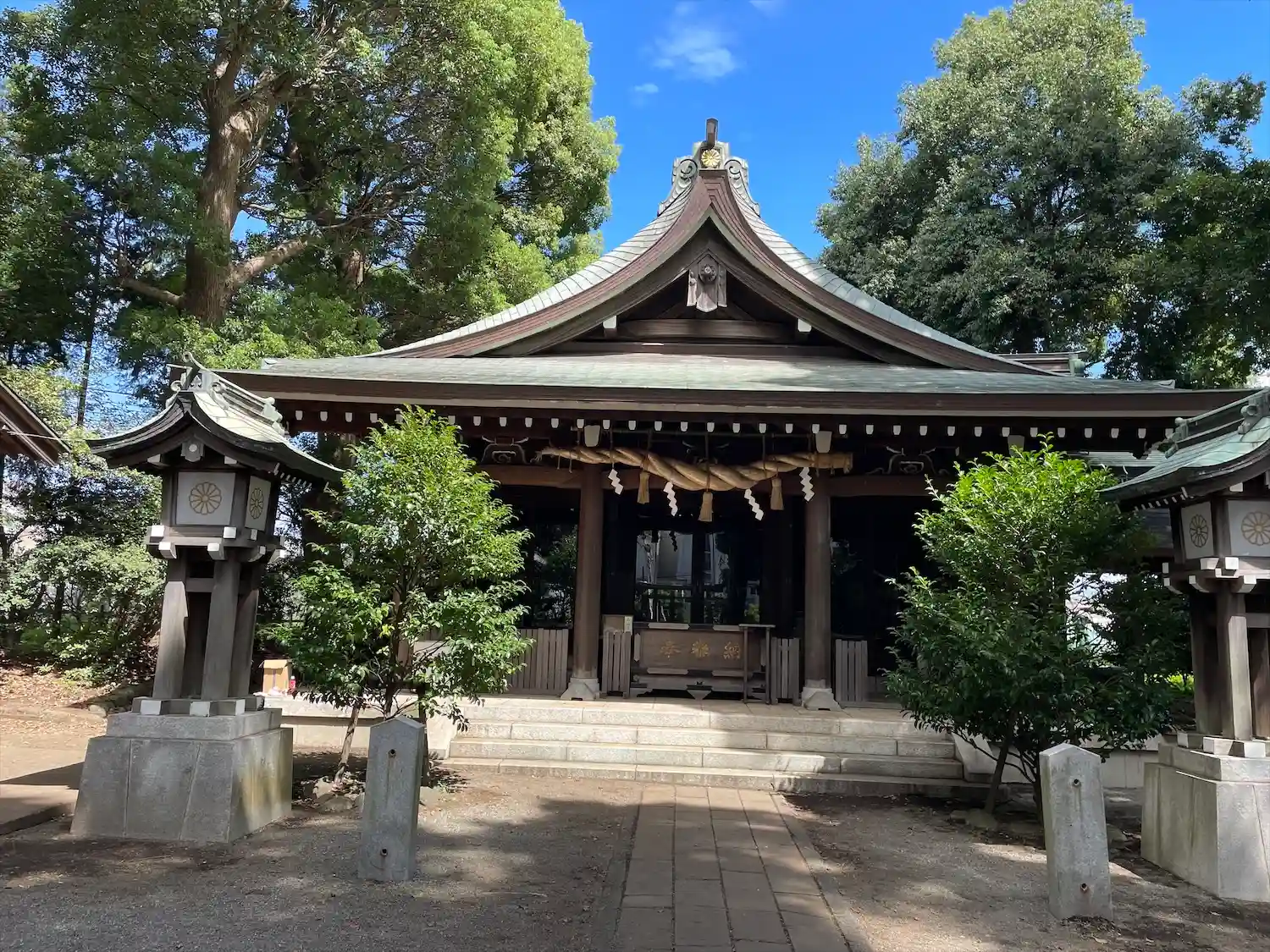 拝殿 worshipe hall 拝殿も近くから撮影したつもりでしたが、この一枚しかありませんでした。以前の寒川神社の社殿になります。