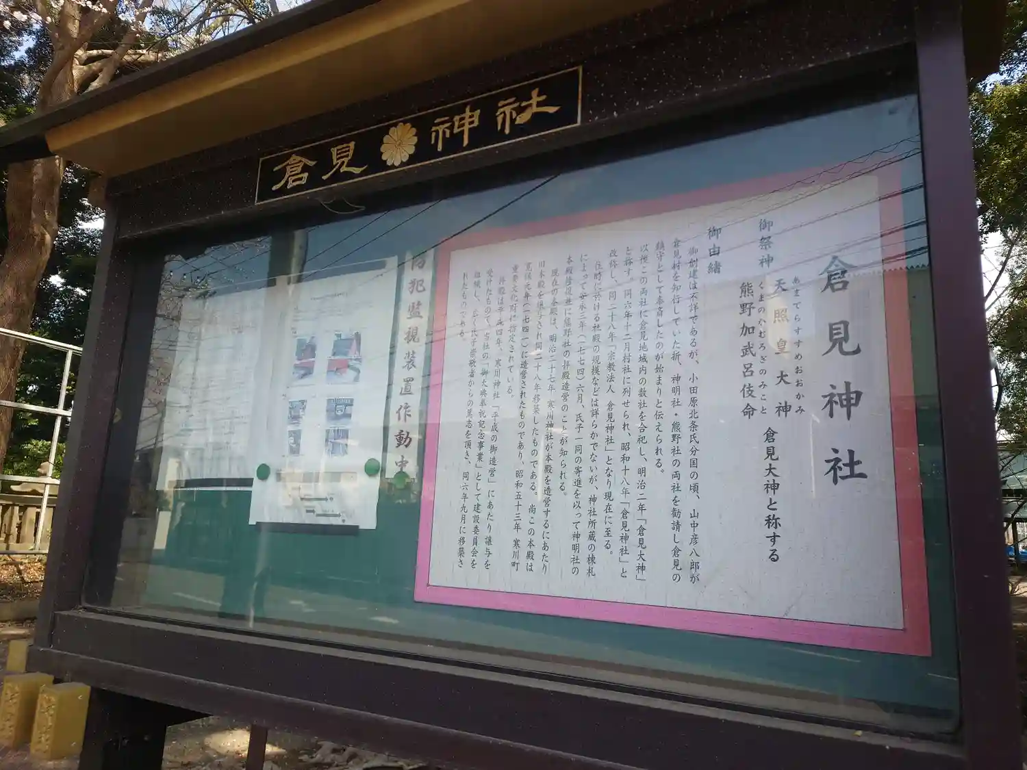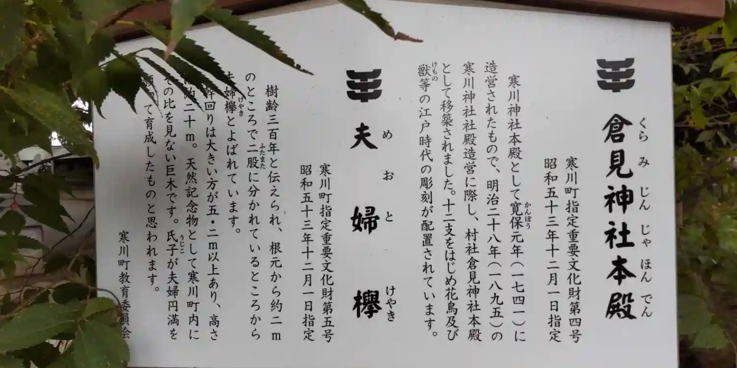 元々熊野社だったそうです。神明社と合併し、倉⾒大神となりました。その後倉見神社になったそうです。