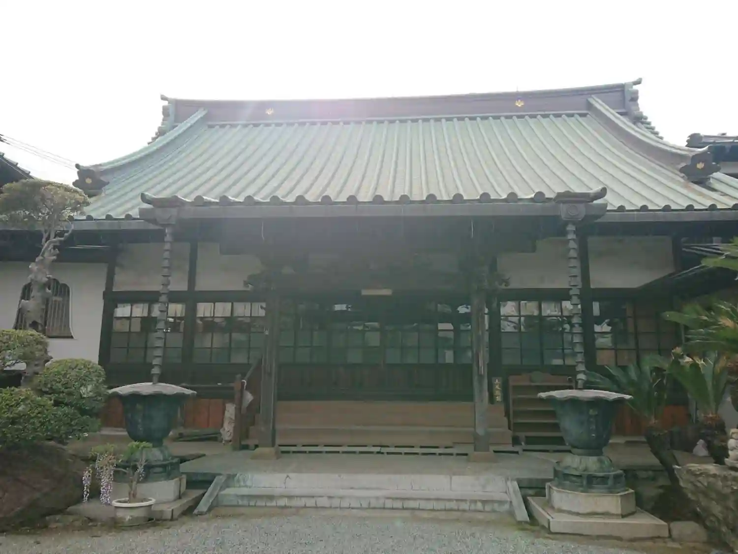 細い参道の奥に大きな本堂があります。