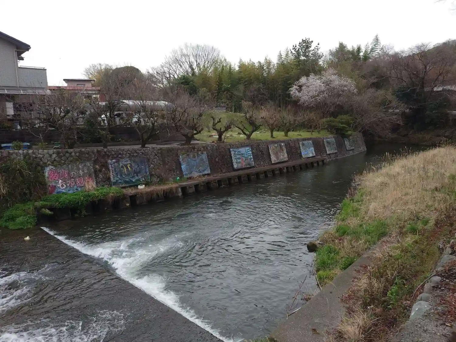 神社前を流れる小鮎川