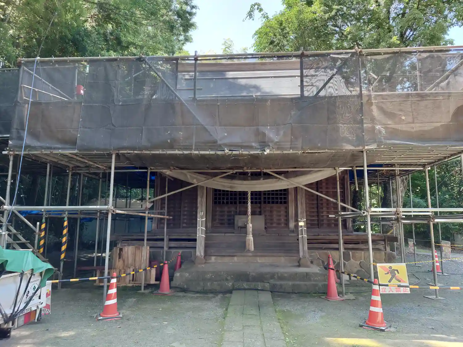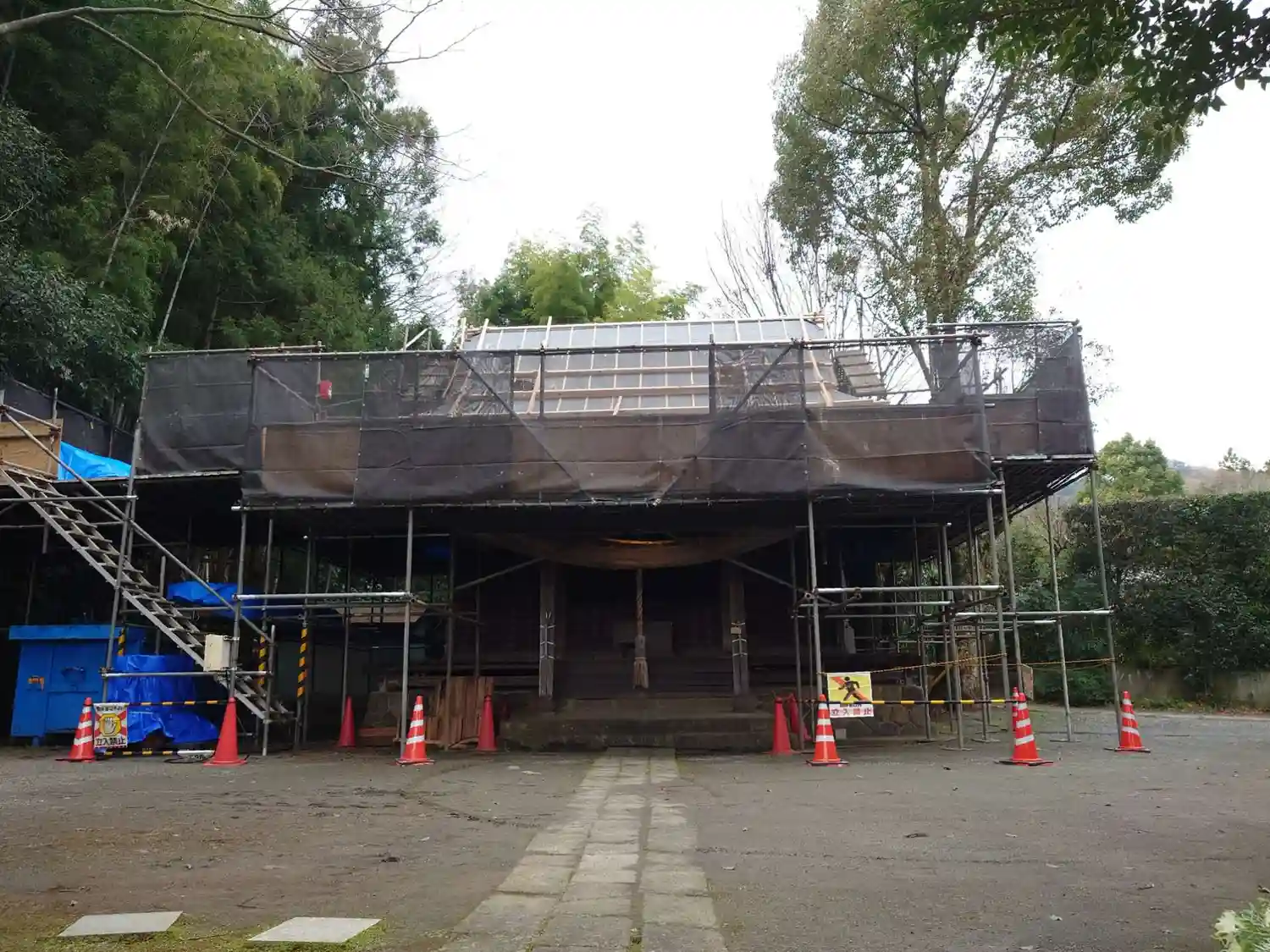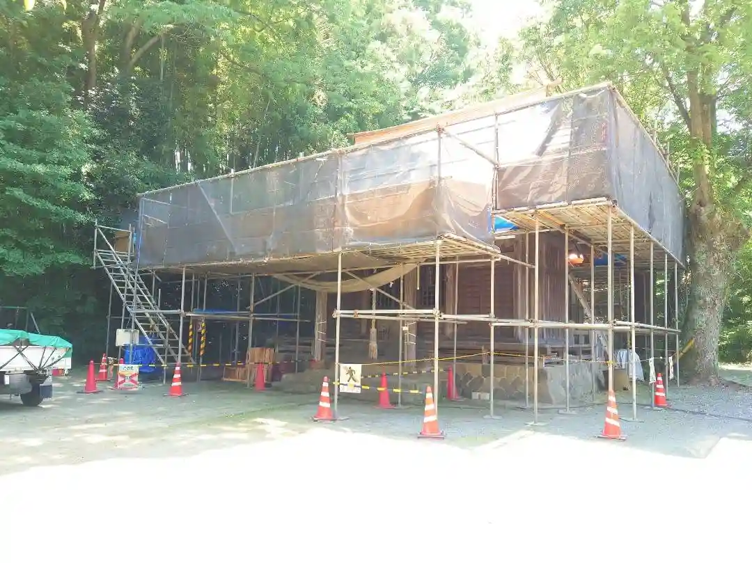 拝殿 現在屋根を修復中