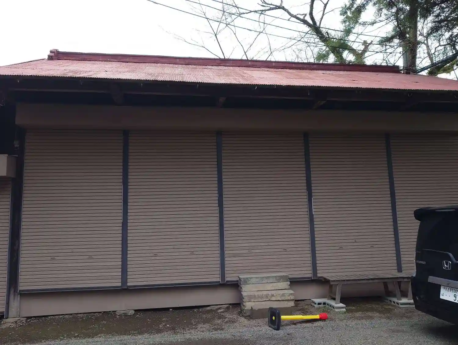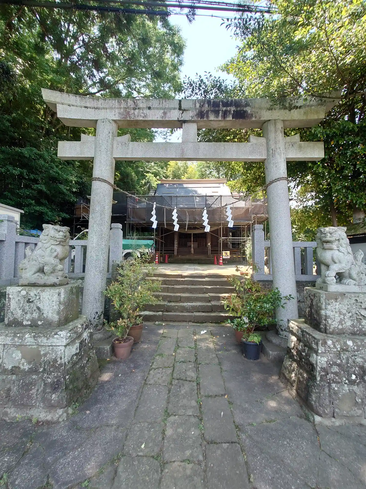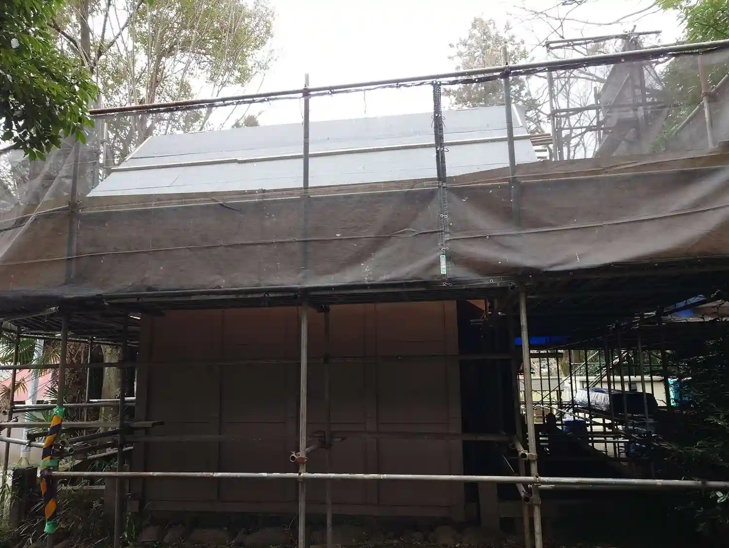 拝殿 現在屋根を修復中