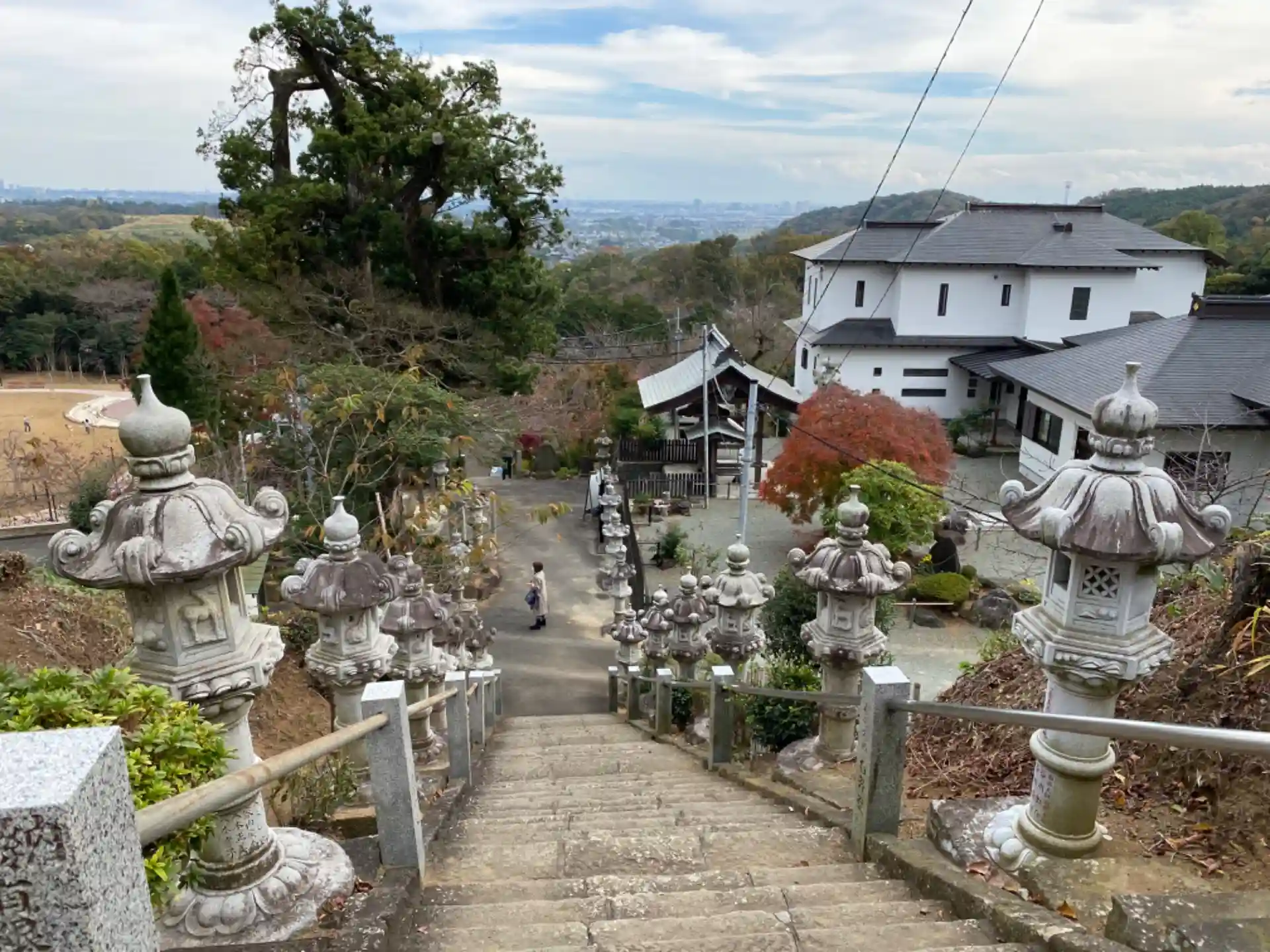 飯山観音入口のざる菊を見に行き、金剛寺脇から山道を登っていくと駐車場に到着。帰りは参道をまっすぐ階段をおりていきました。車の時はかなり距離があると感じましたが、歩けました。
