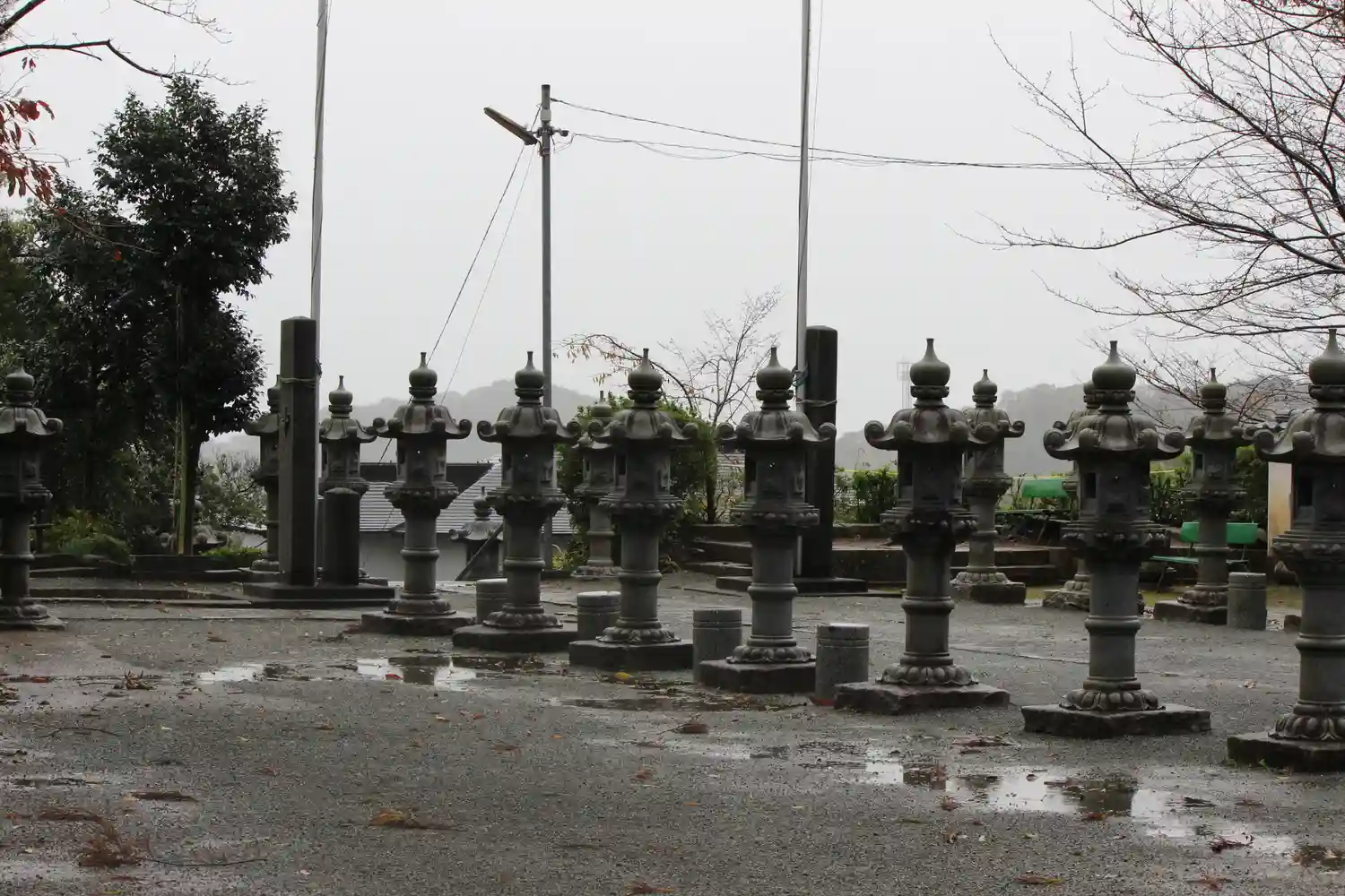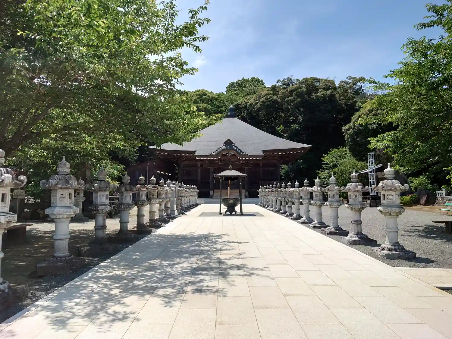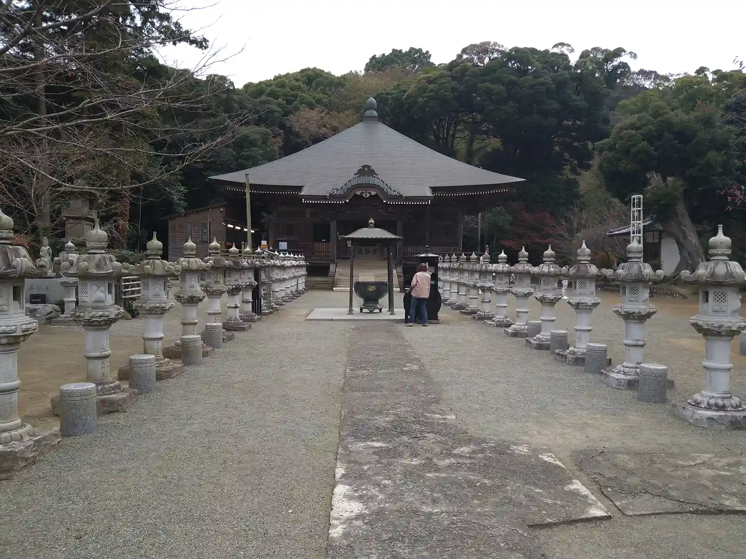 観音堂の前に整然と並んでいる石灯…