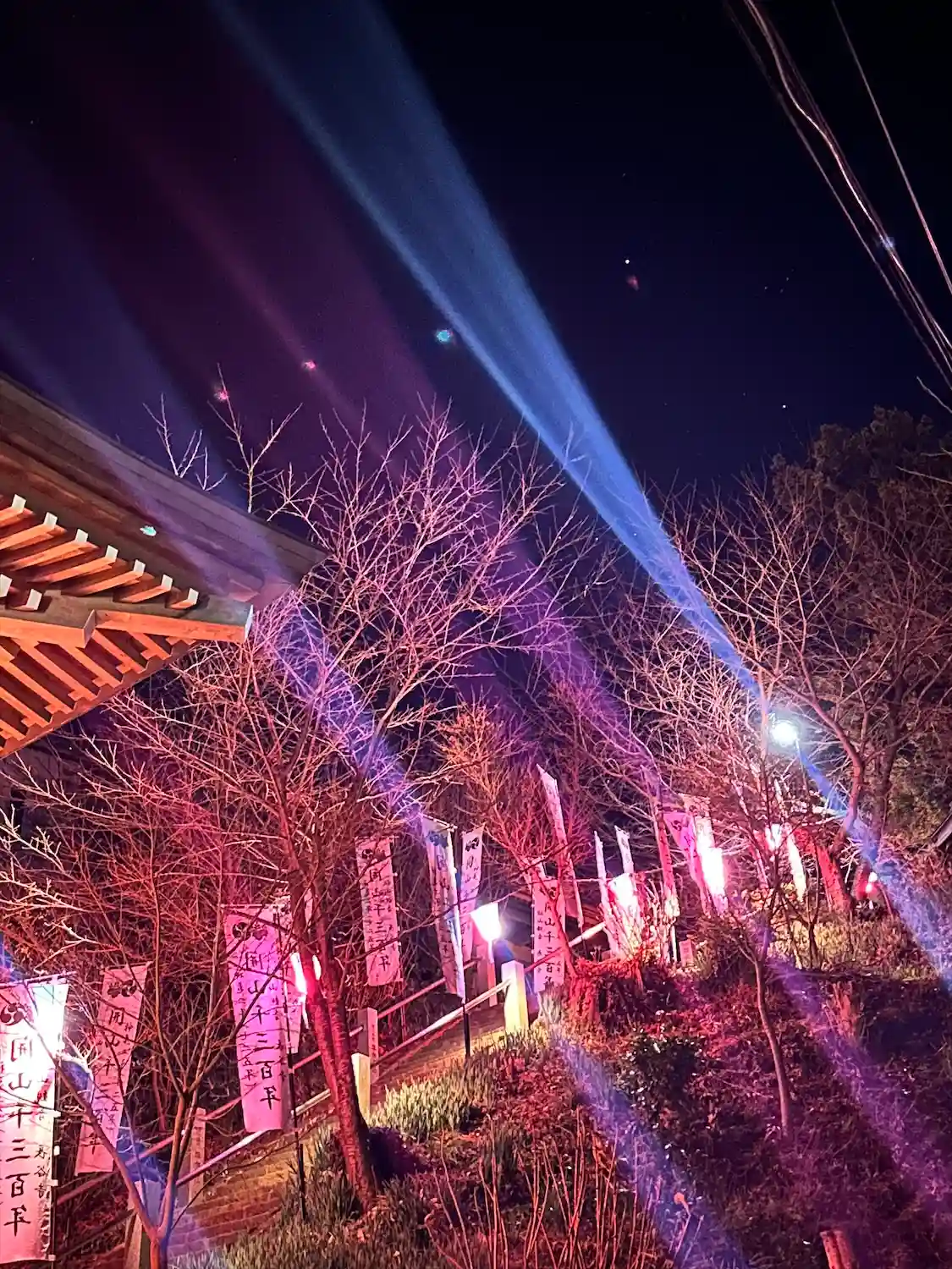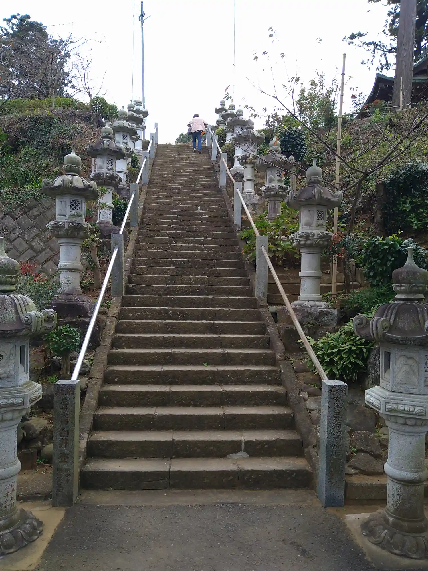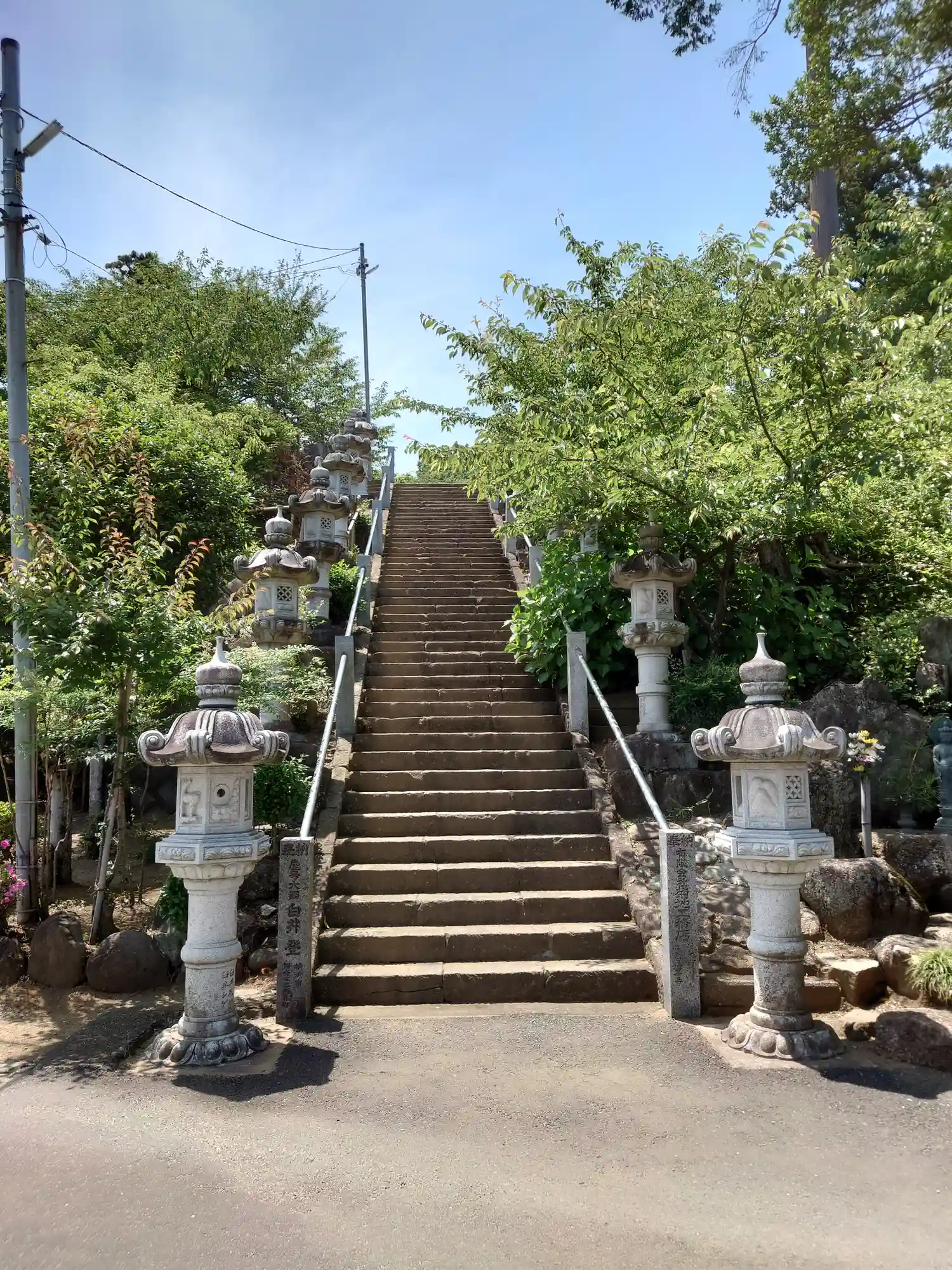 階段を登ったところ。参道に沿って並ぶ石燈籠が印象的。