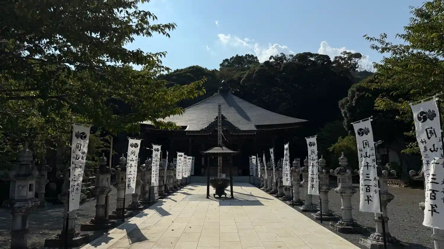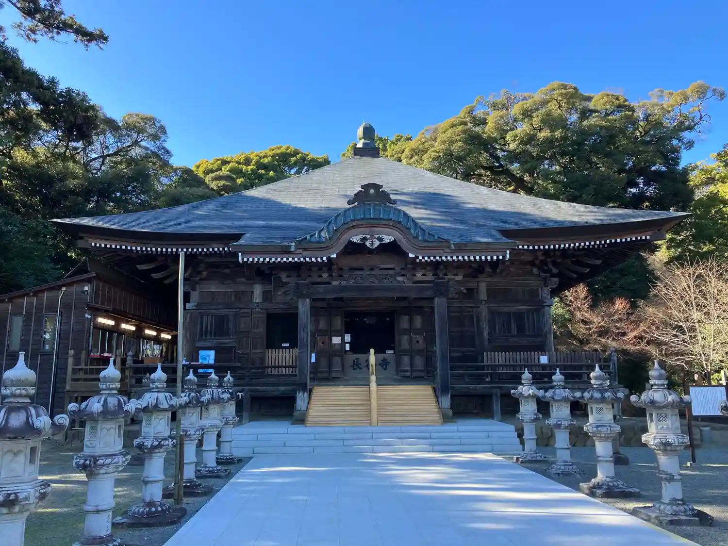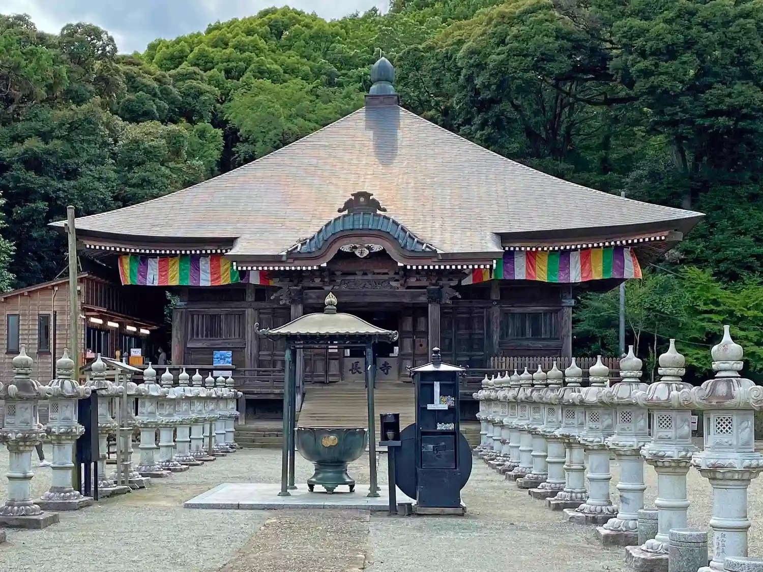 本堂前にずらりと燈籠が並んでいました。…