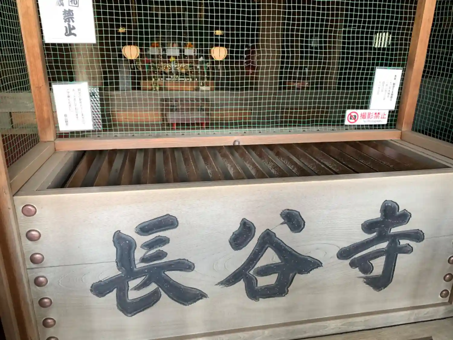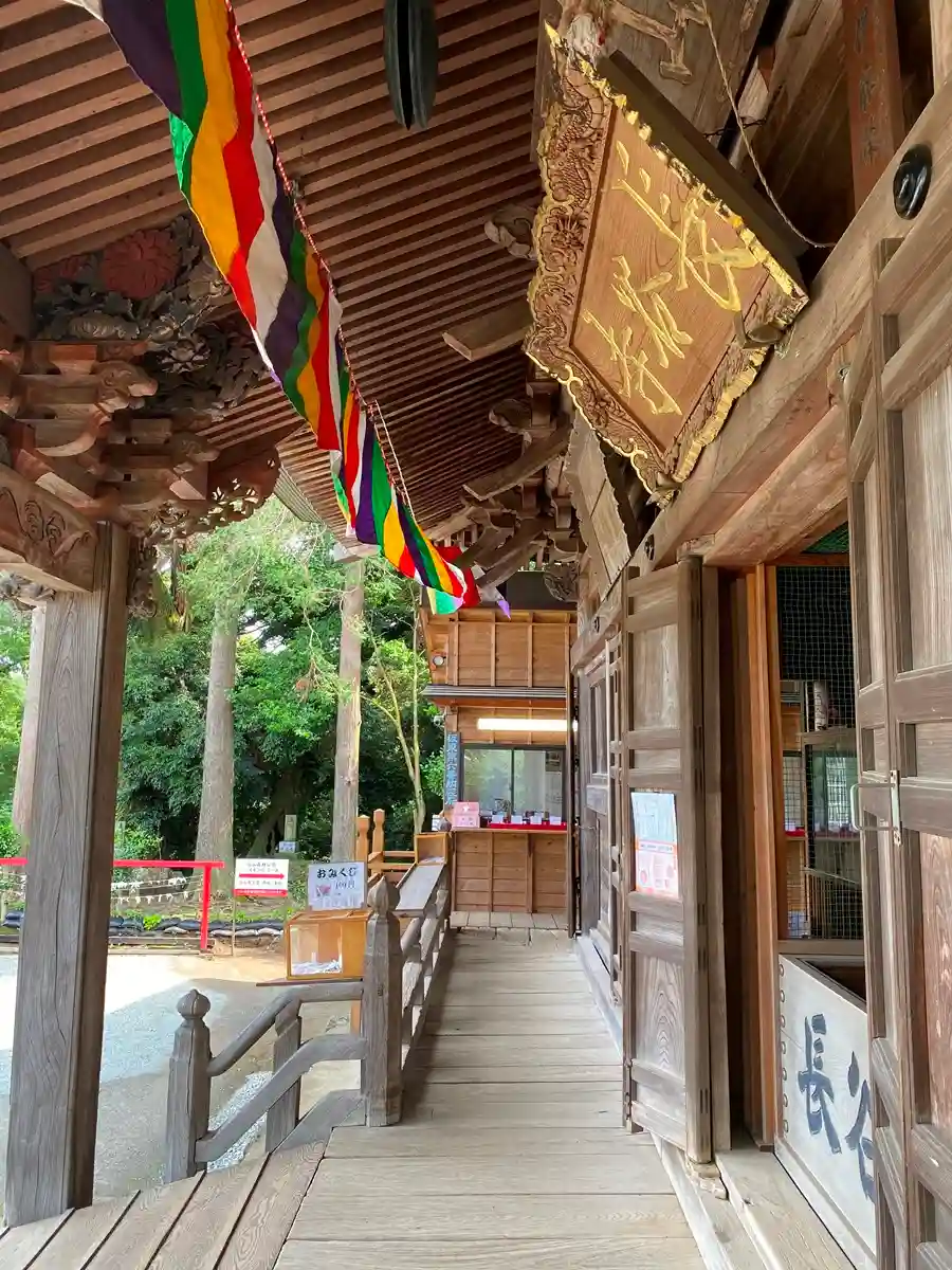 <観音堂>正面。奥の厨子の中に、奈良時代の725年に行基が大和長谷寺の仏材に刻んだと伝わる本尊・十一面観音薩立像を安置。