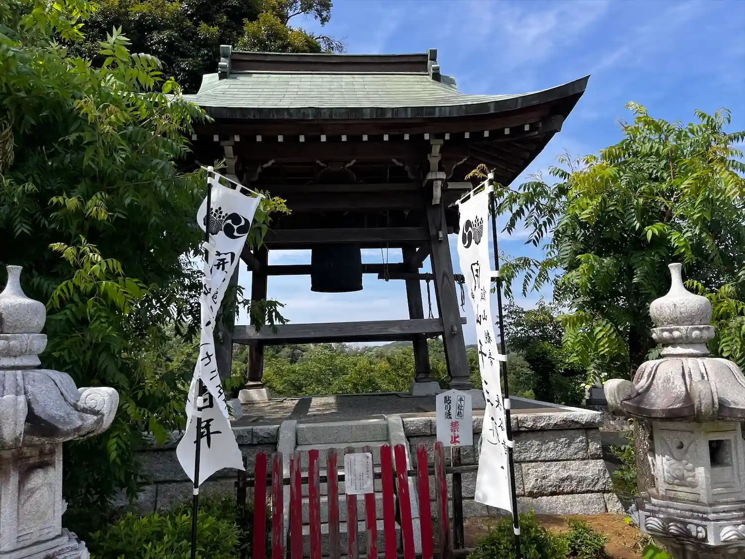 右手方向にある<鐘楼>。銅鐘には、室町時代1442年の銘がある。