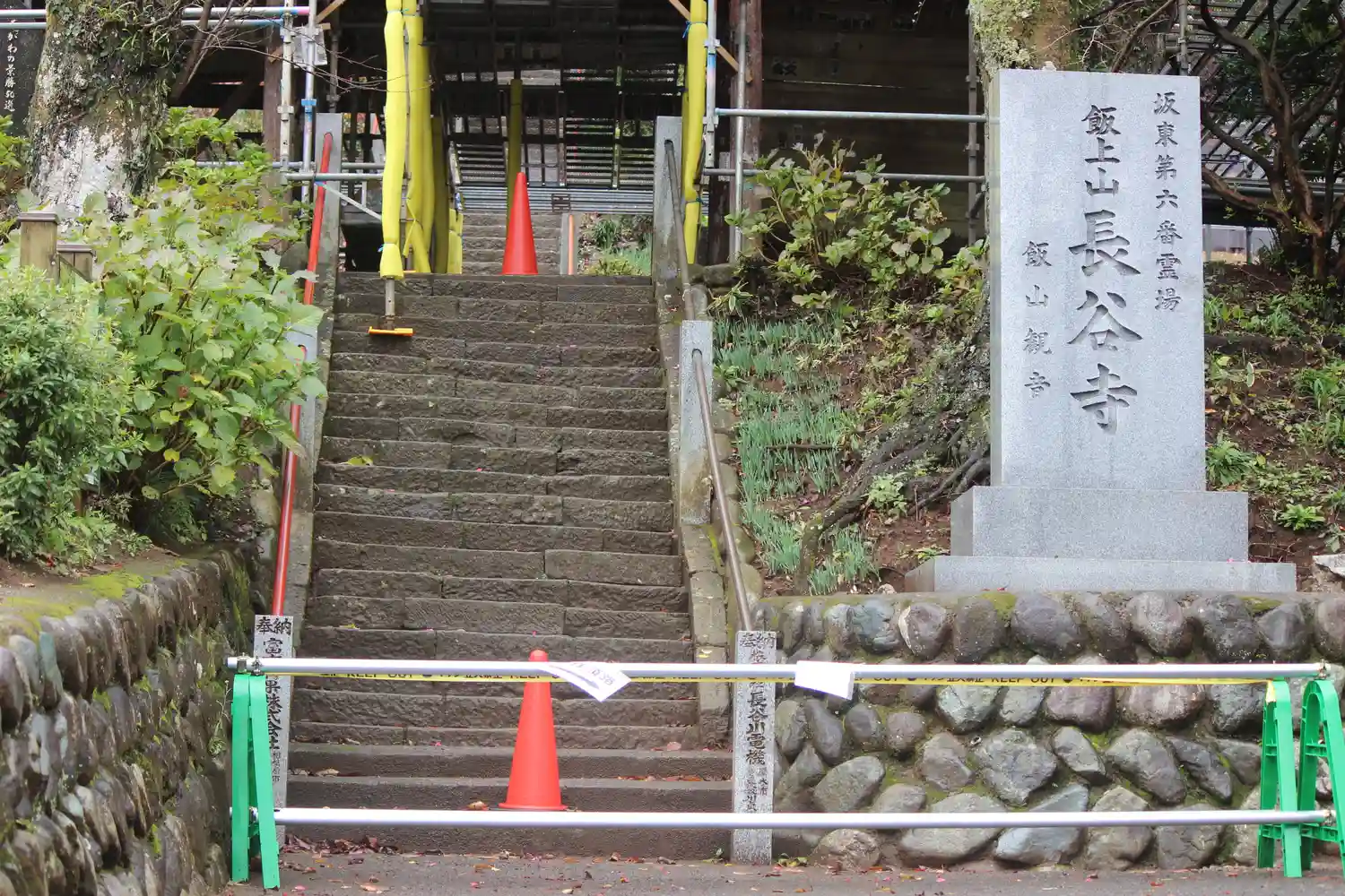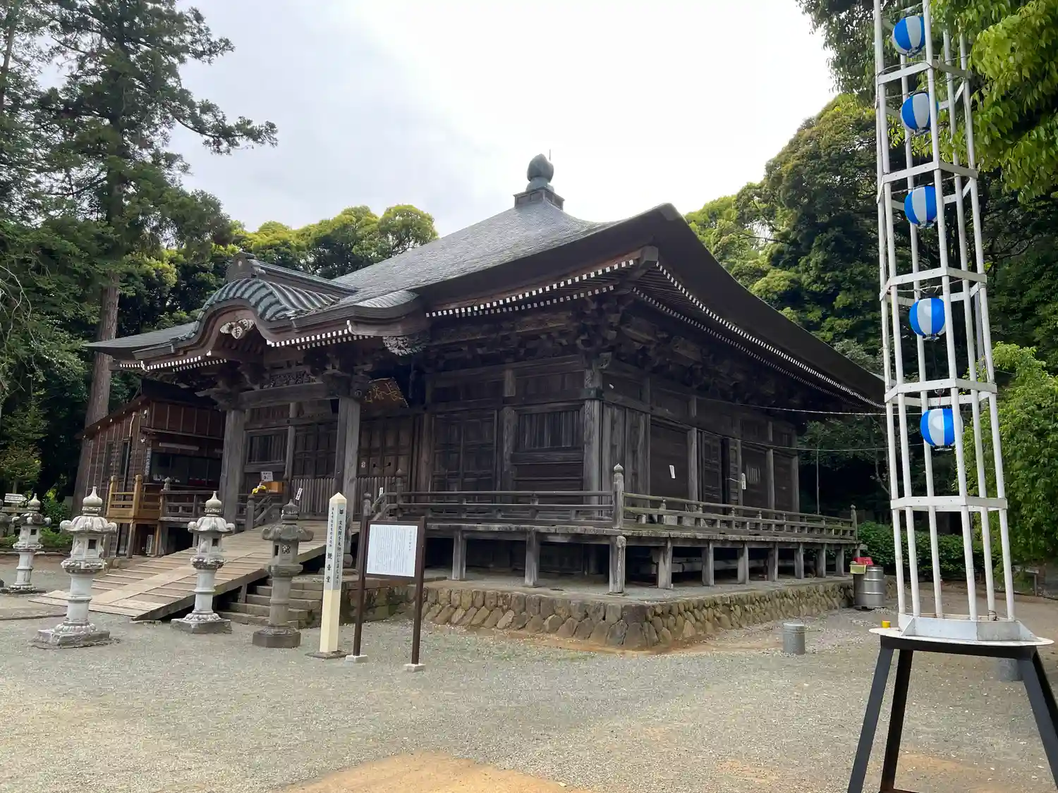 昨年の台風の影響を受けて仁王門が傾いてしまい修復中でした(寺標後方)