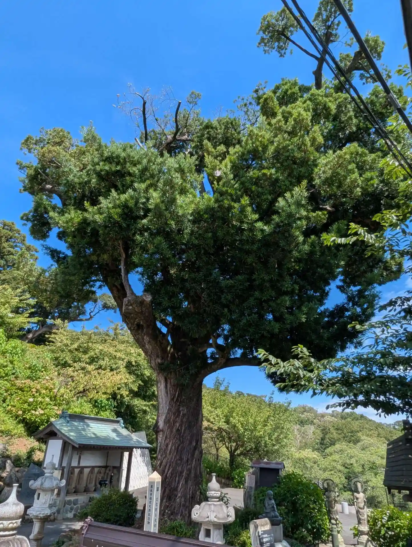 存在感が凄い😃かながわ名木100選に指定されています、樹齢400年のイヌマキ🌳