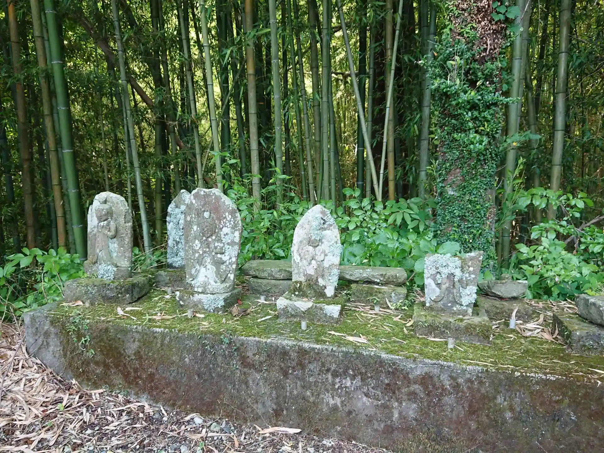 お寺の敷地の外に小さな石仏たちが並んでいました。