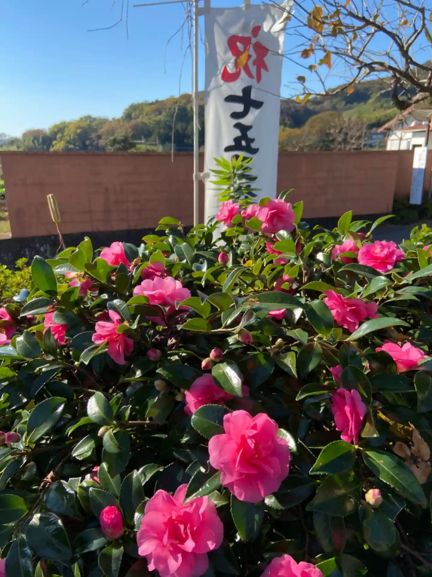 現在、境内の其処彼処では山茶花(茶梅・サザンカ)が咲いています。