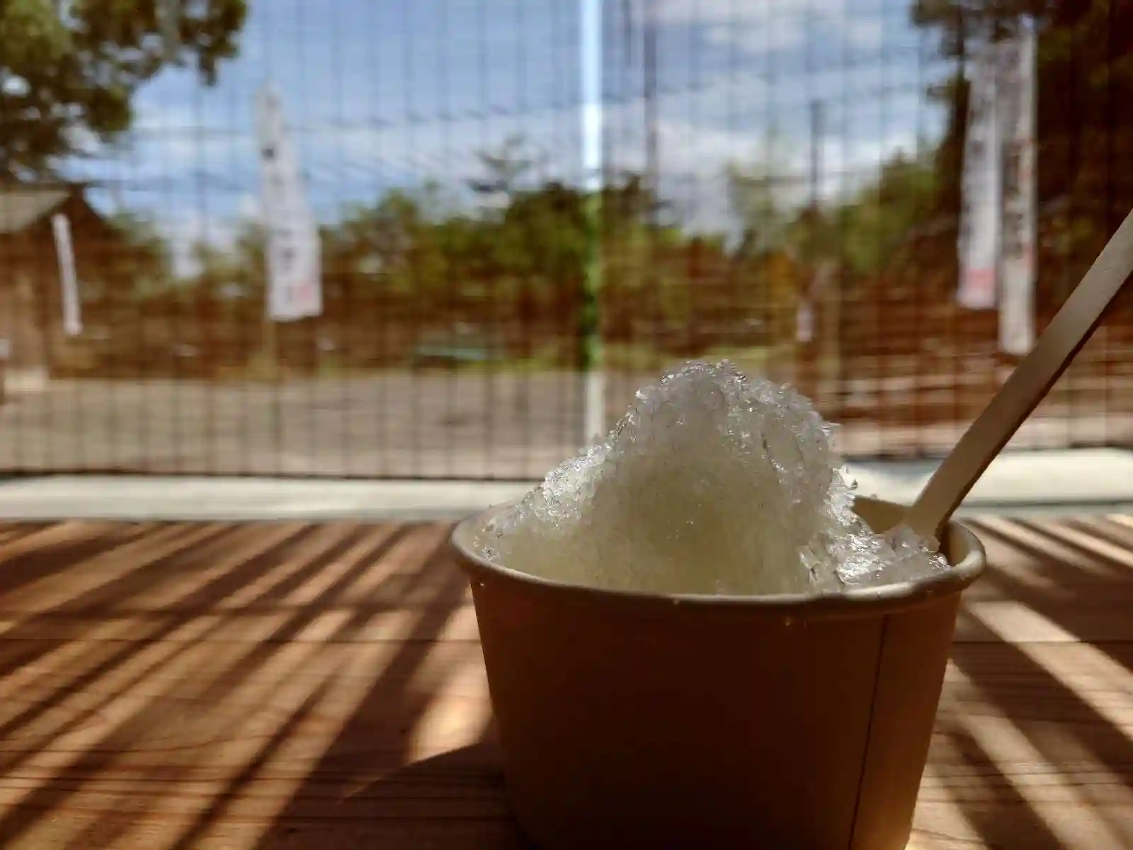 「かき氷」を、神前向拝で献じて頂いた後、「おさがり」として召し上がっていただきます。