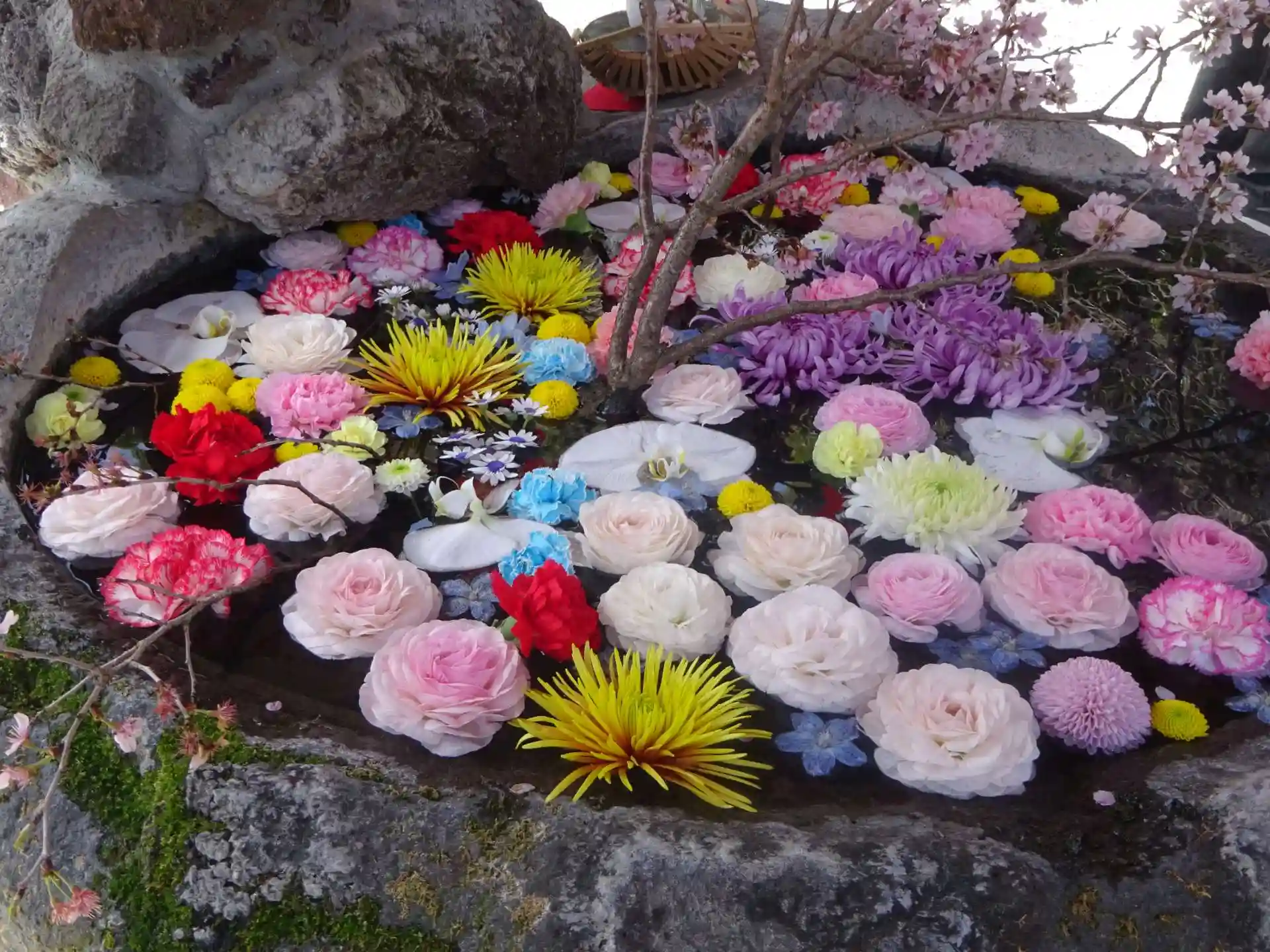 綺麗に飾られた 花手水に^^