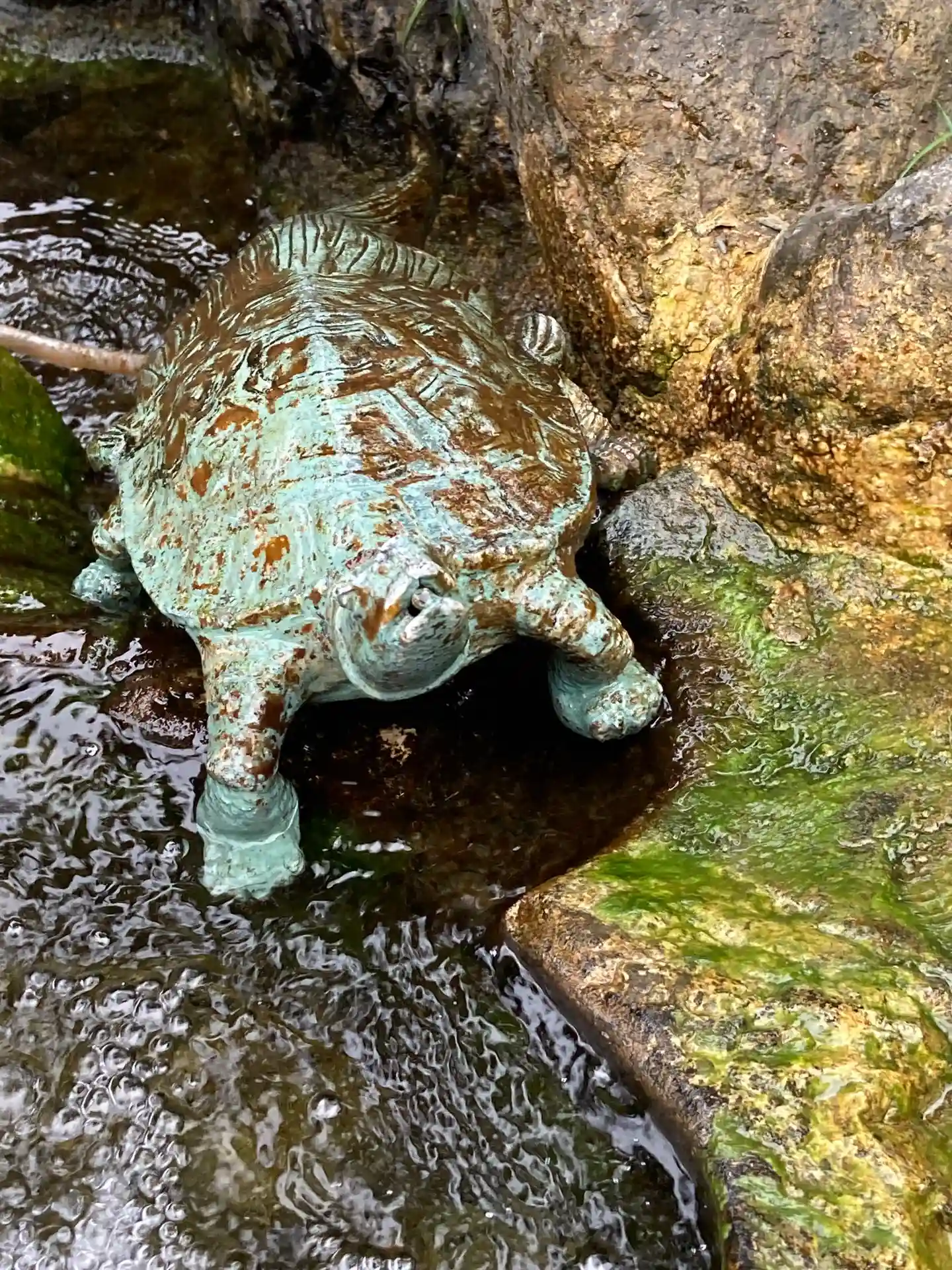亀は左側に彫られています。