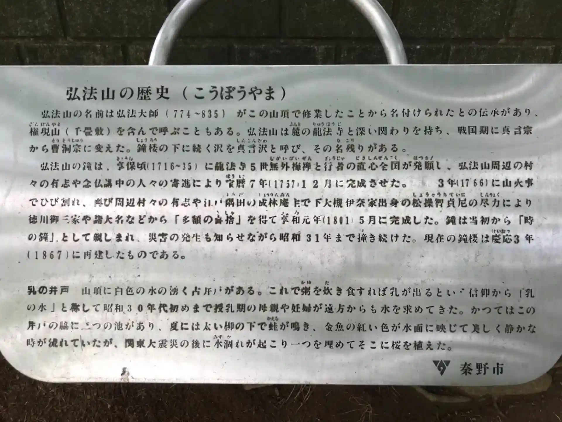 弘法大師の修行霊場とされ、鐘楼や乳の井戸があります。