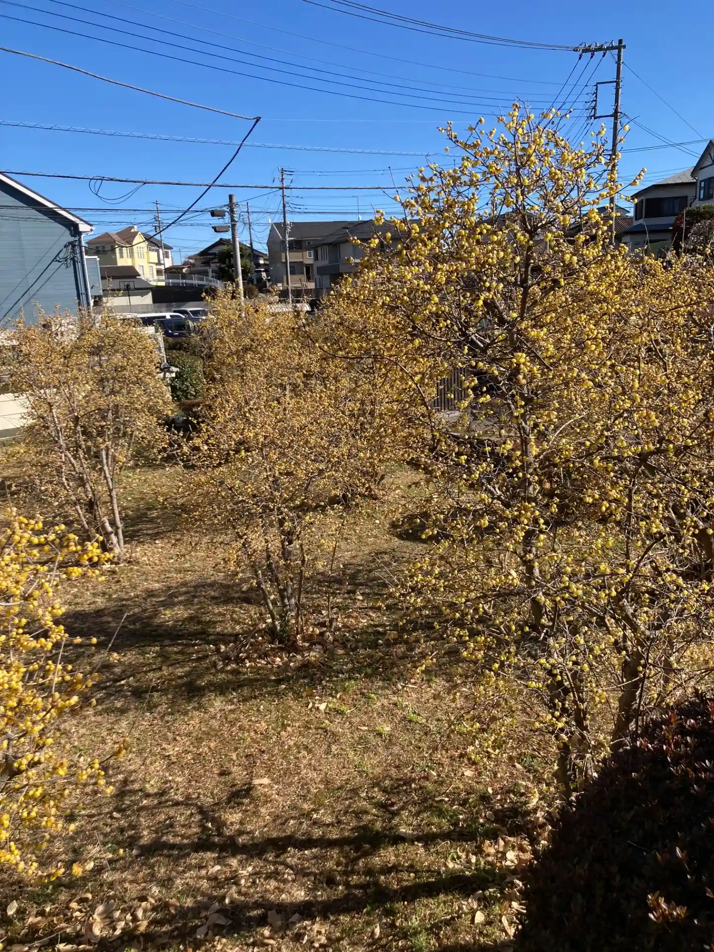 お堂前から見たロウバイの様子