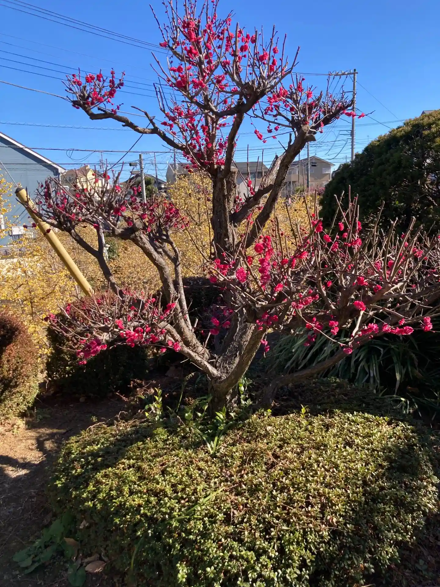 右側にロウバイ