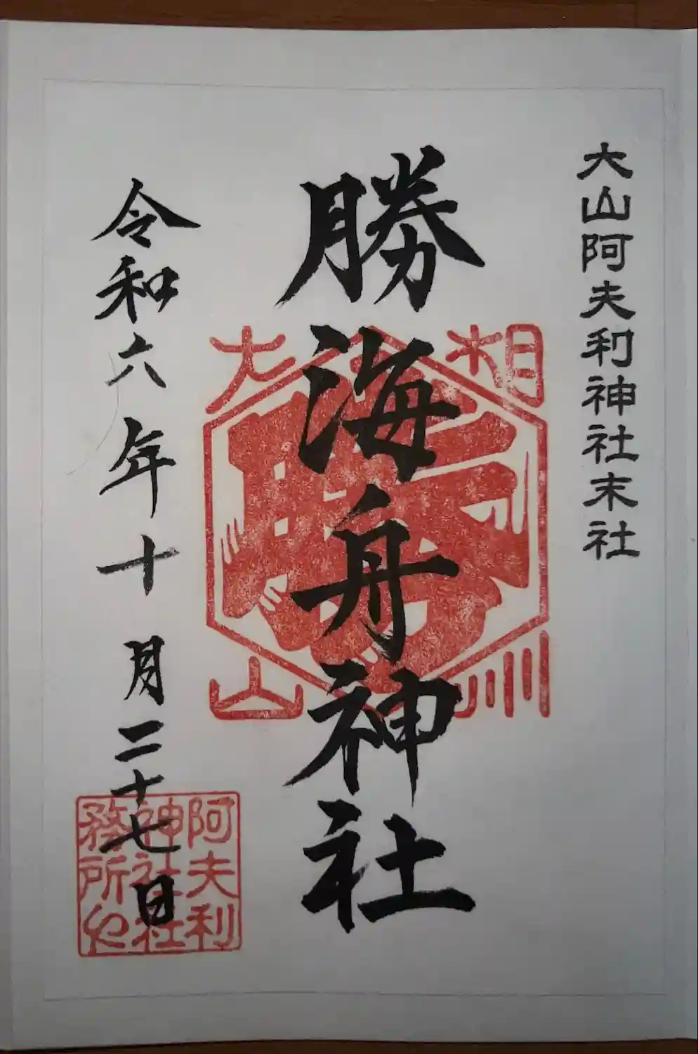 大山阿夫利神社社務所〜末社・勝海舟神社の御朱印