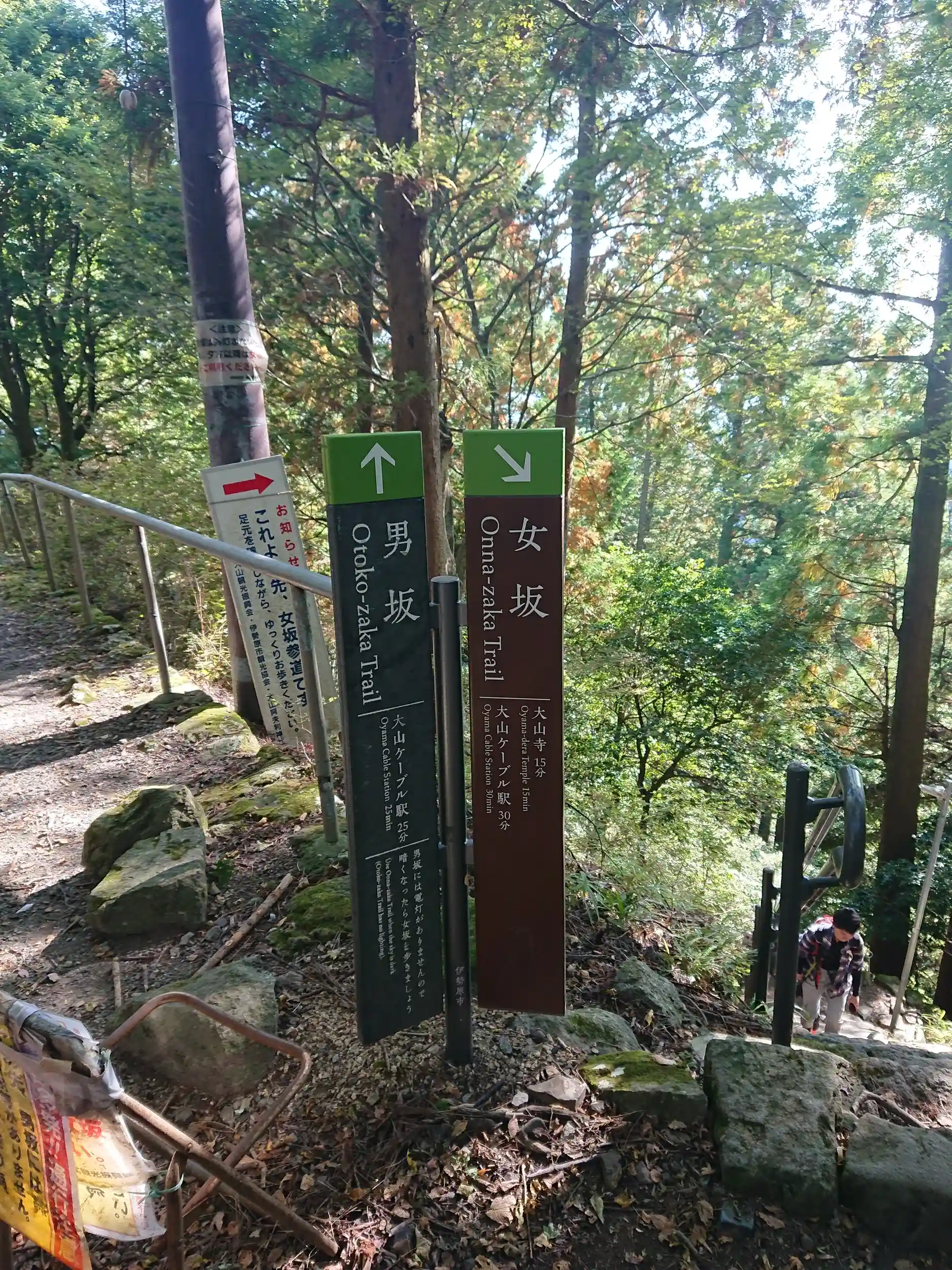 女坂から登り男坂を下る計画で左側を進む…