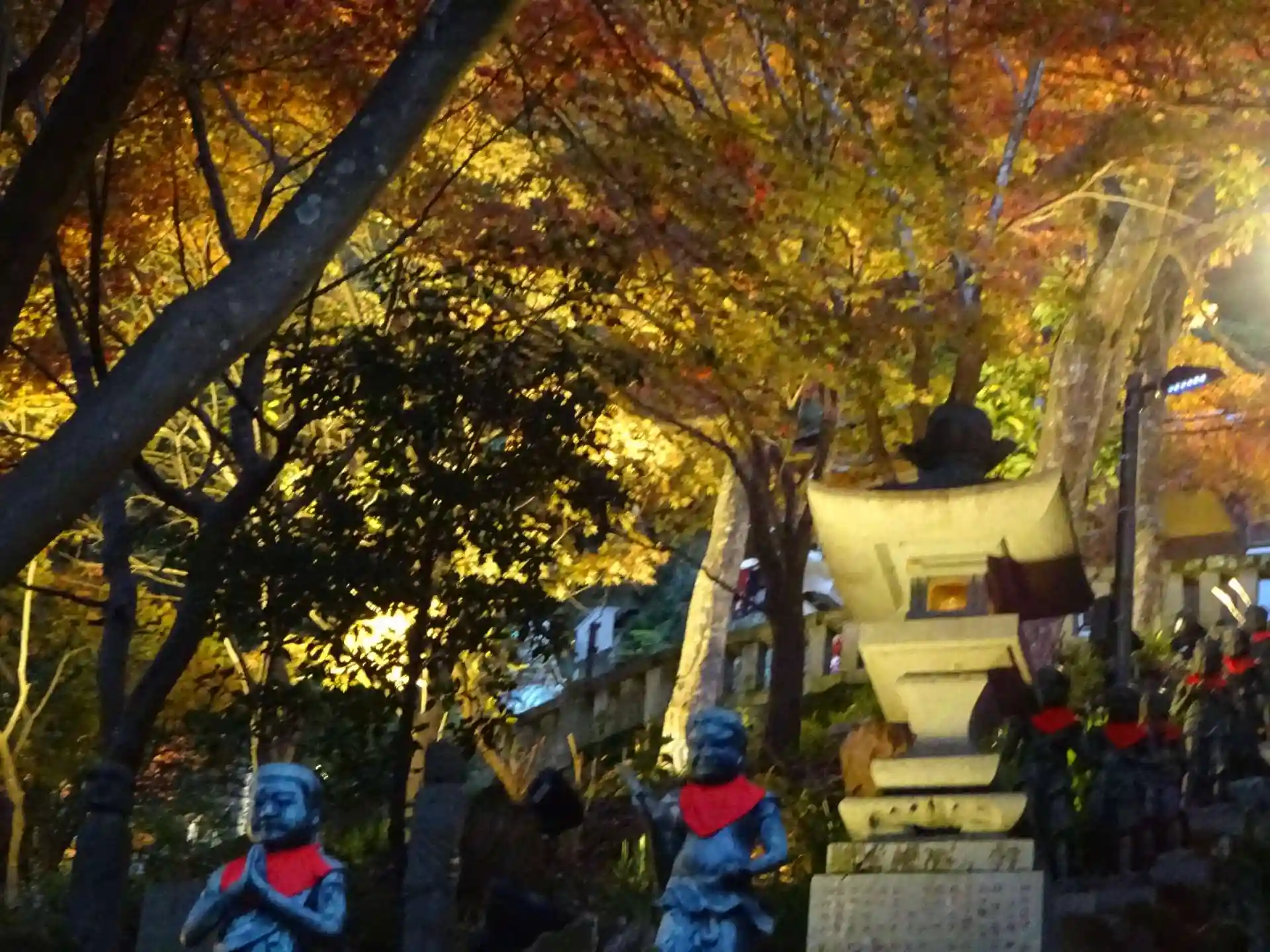 ライトアップされ 赤みが増した参道のモミジ^^