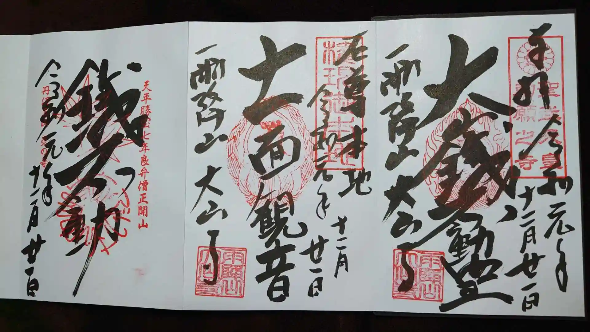右から、鐵不動明王、十一面観音、丹沢三山の御朱印。