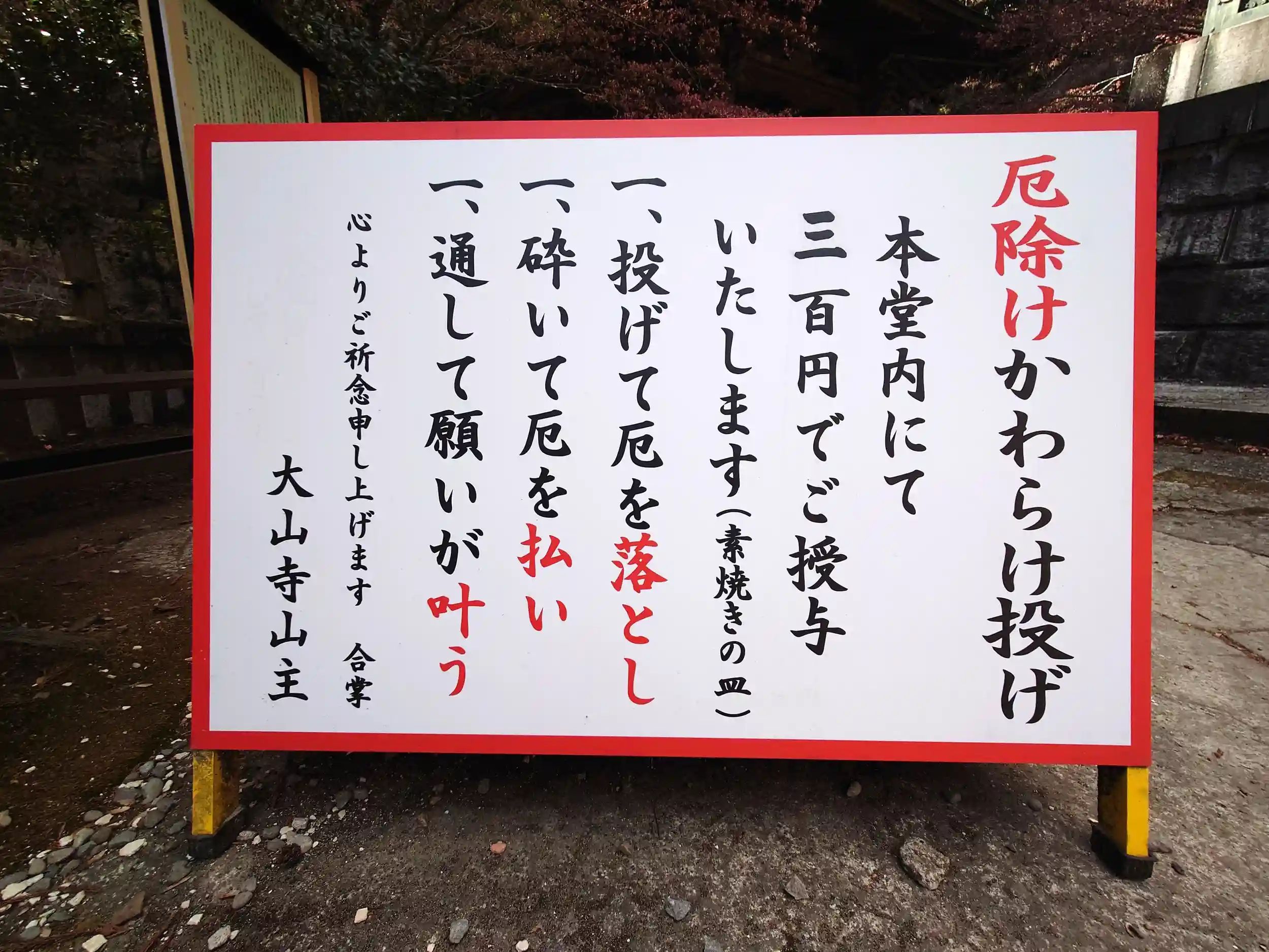 本堂前にある『厄除 かわらけ投げ』