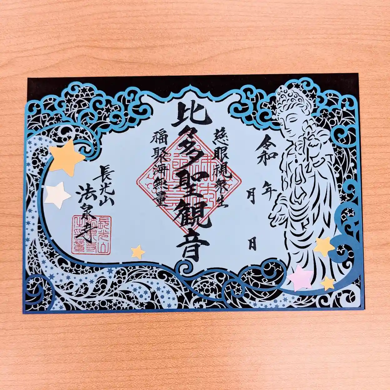 法泉寺の比々多聖観音様をデザインしました切り絵御朱印です。