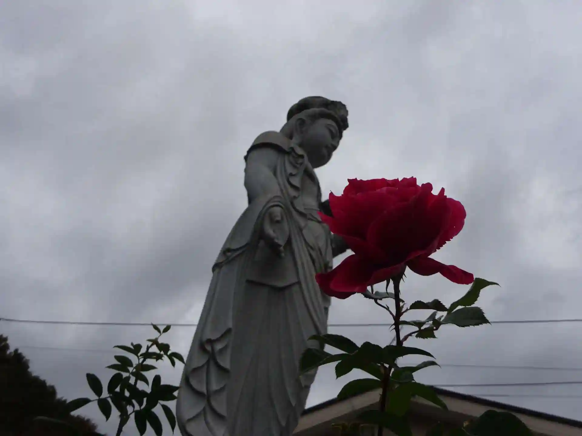 観音様と一輪のバラ^^