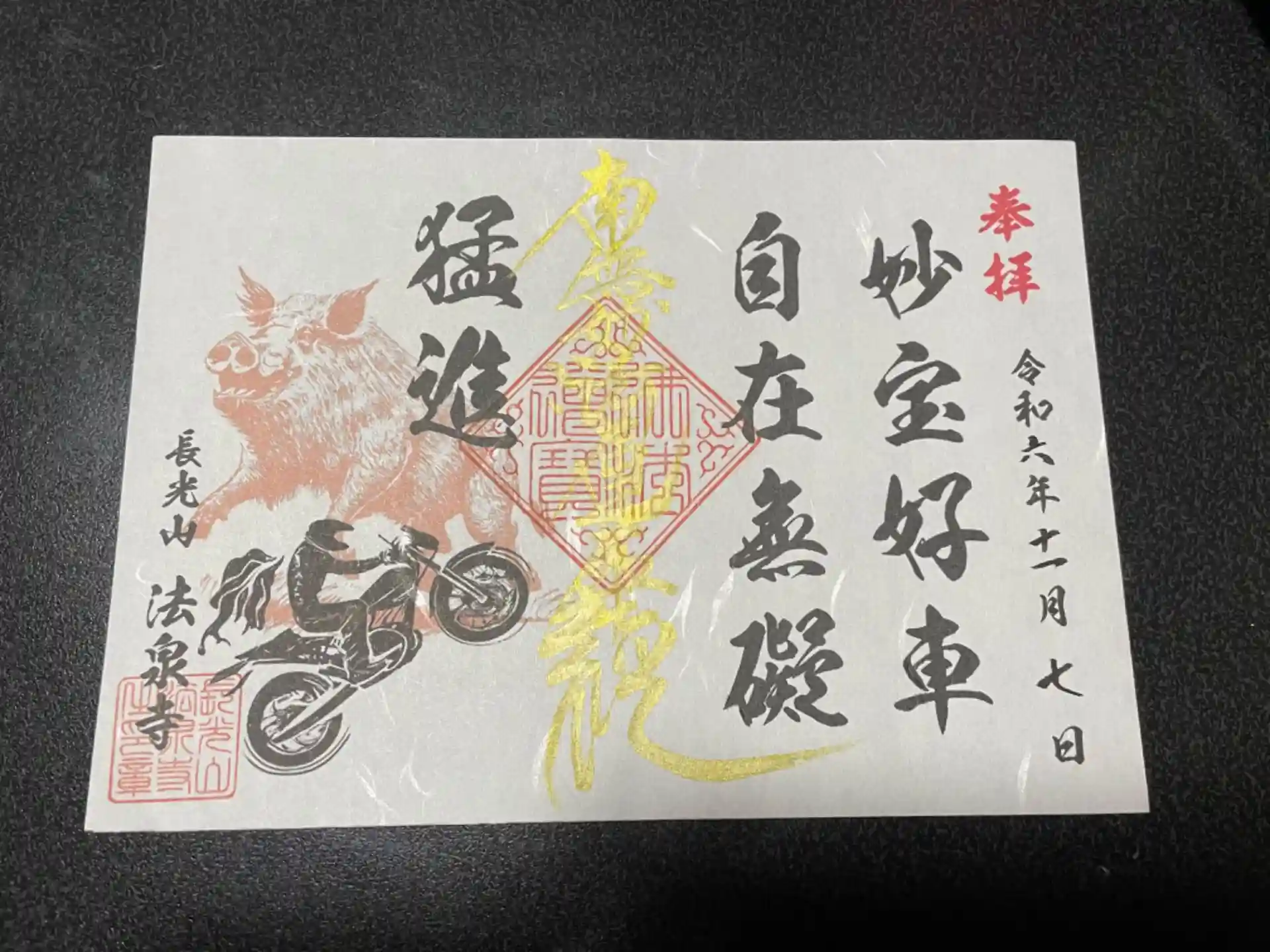 バイクで参拝される方も多いようで猪とバイクの御主題が珍しいと思いました。