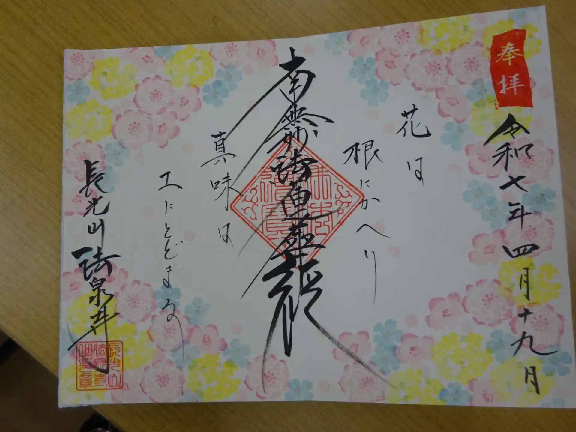 今月は 直書入れで綺麗な花御主題と ミニ切り絵御朱印頂いてきました^^