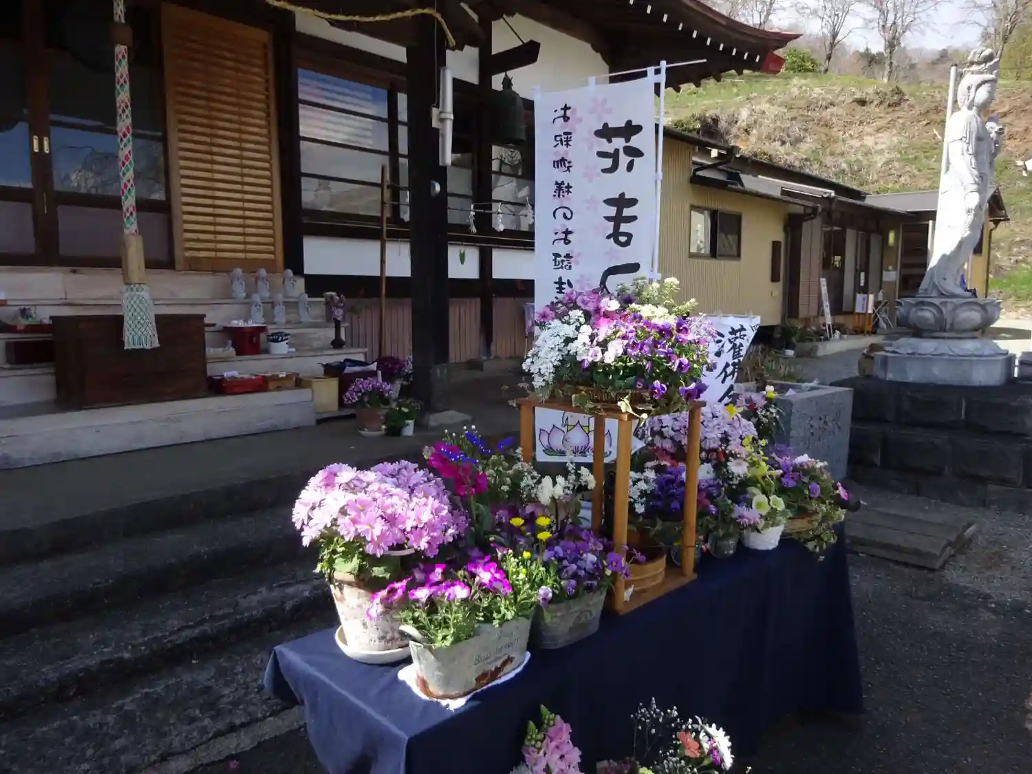 綺麗に参拝の方々が持ち寄った花で飾られて^^