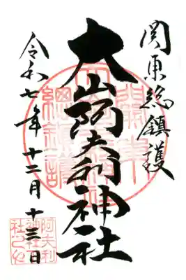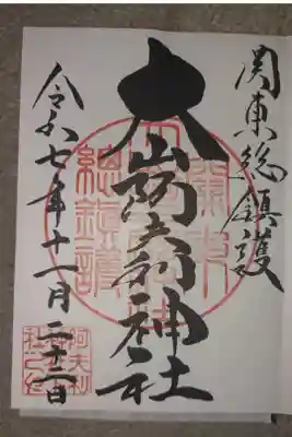 右上に関東総鎮守、真ん中に大山阿夫利神社と書かれ、社印が押された御朱印です。