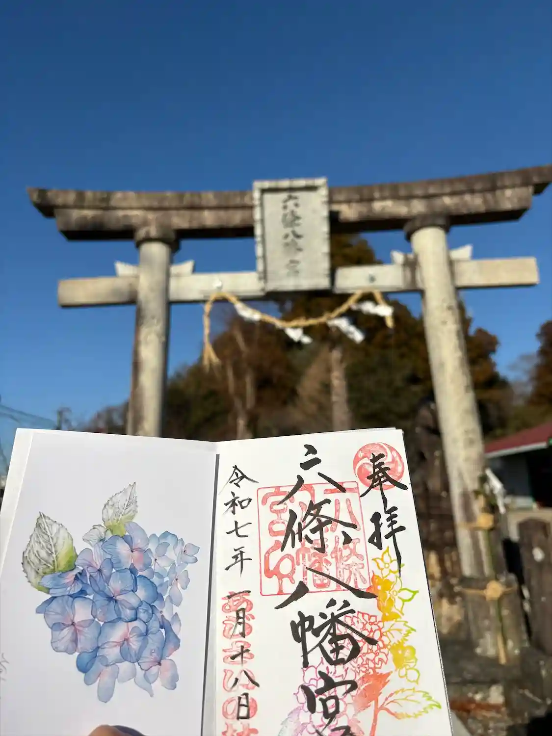 The地元の神社。あじさいの時期じゃないと人がほぼいない…。御朱印は郵送対応で備え付けのポストにお…