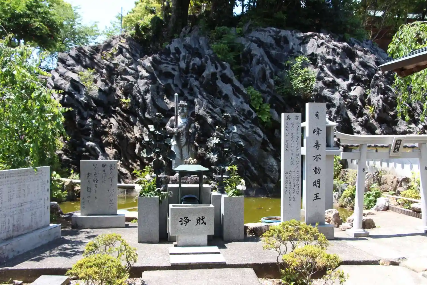 変わった岩をうまく利用してデコレートした境内が…