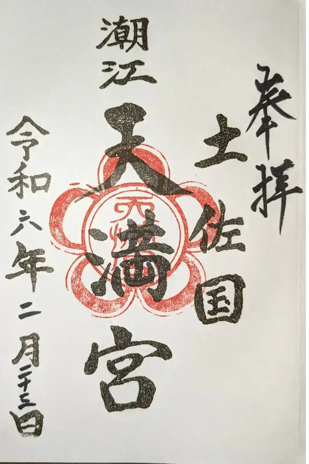 こちらが潮江天満宮の御朱印です。