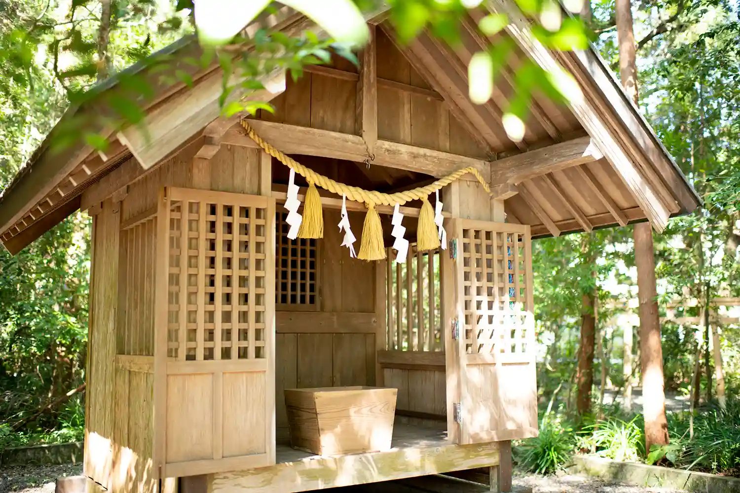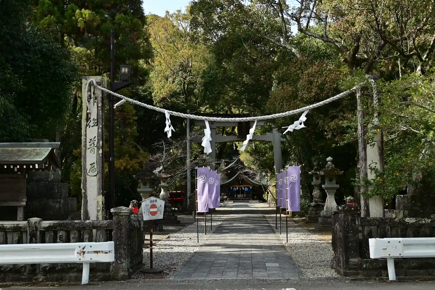 入り口の注連縄柱