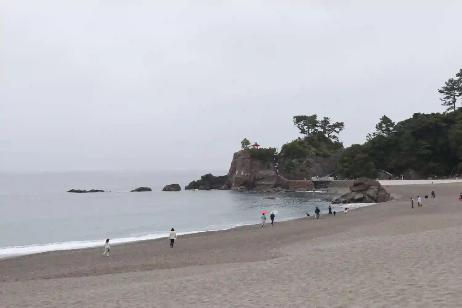 龍王岬の高台に祠が見え、多くの方が列をなして参拝されていました。