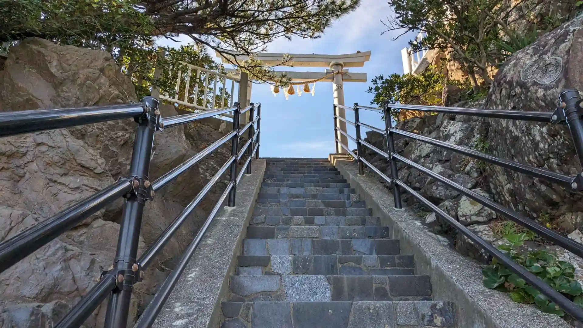 坂本竜馬像を見て桂浜の景色に圧倒されながら進んだ先に岬の上に建てられた社殿があります。創建時期は不明ですがあの長宗我部元親が建てたという説もあります。岬の上にあるので桂浜や太平洋の景色がとても綺麗です。絶景を楽しめる神社です。