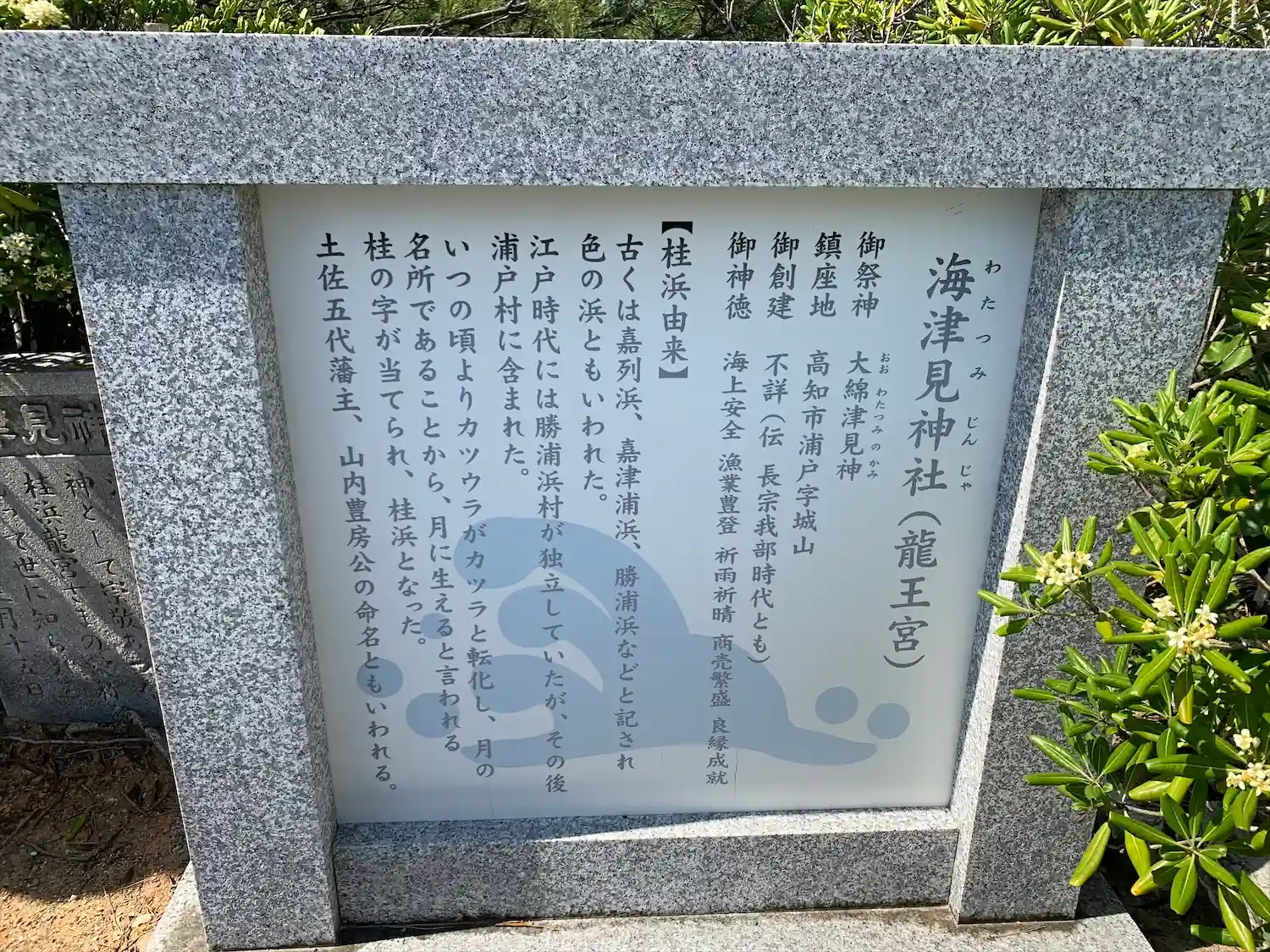 海津見神社は、高知県高知市浦戸、桂浜の先端の竜王岬に鎮座し…