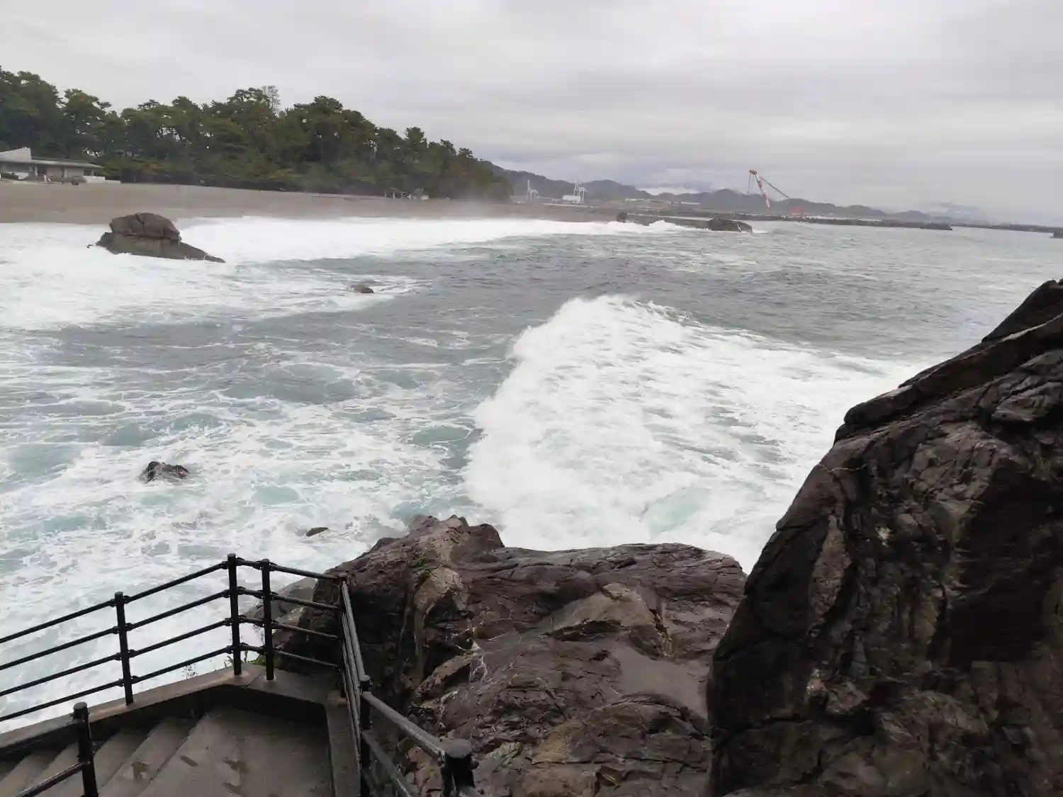 高知市から桂浜に移動。お目当ての神社でしたが12月は手摺の修繕工事で参拝不可でした。遥拝したものの…