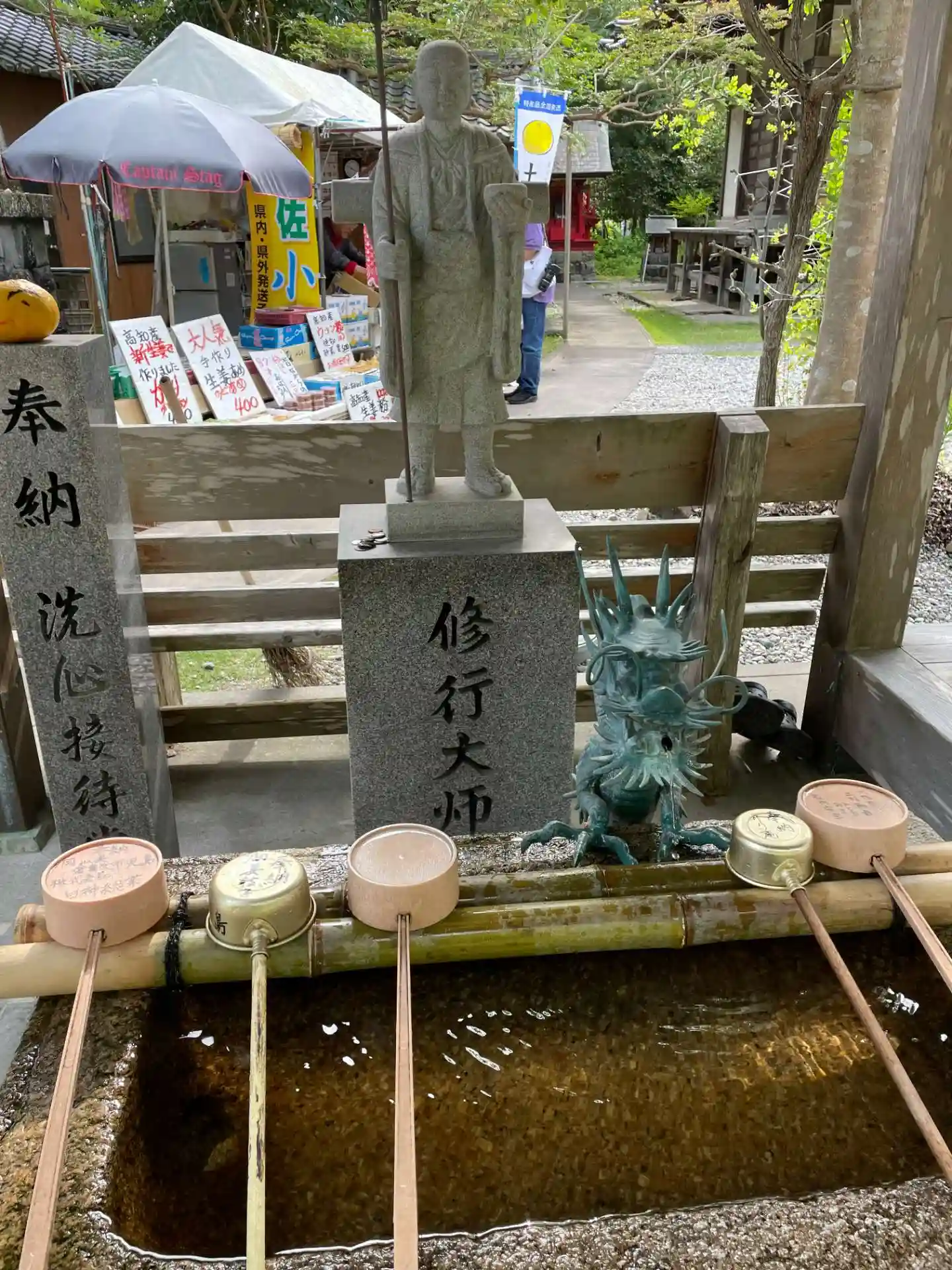 手水は龍でした 奥に修行大師像