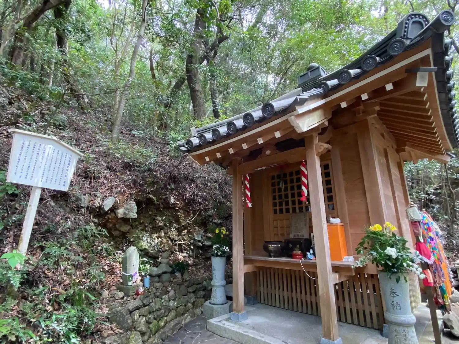 境内から150mほど離れたところに奥の院があり、弘法大師が生えて…