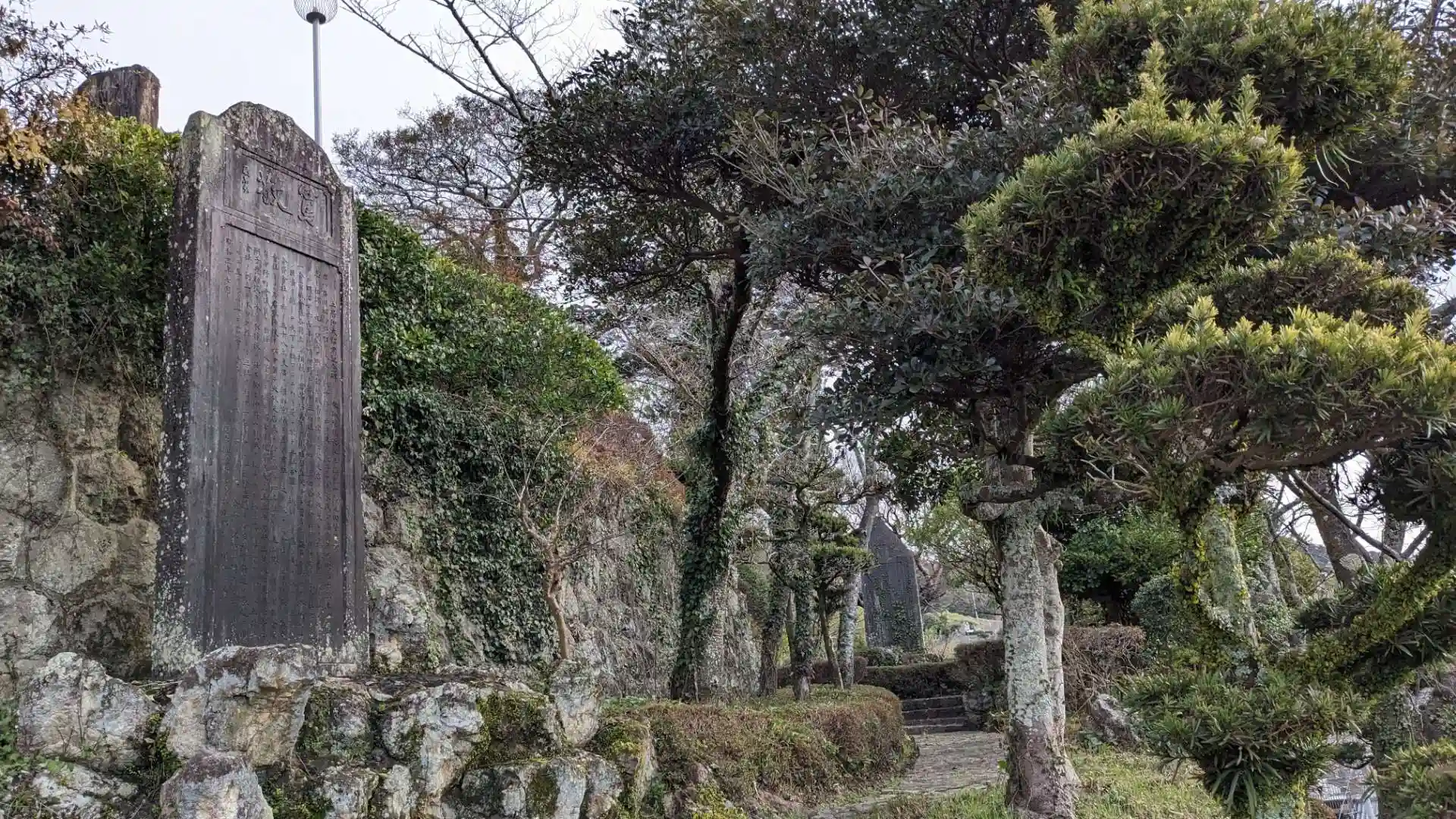 観光協会近くから長い階段が伸びています。登るのは大変でしたが上からはいの町を一望することができます。境内には紙の町いのに貢献した人々を称える紙業功労者記念碑が並んでいます。手水が金の字になっているのが面白いですね。
