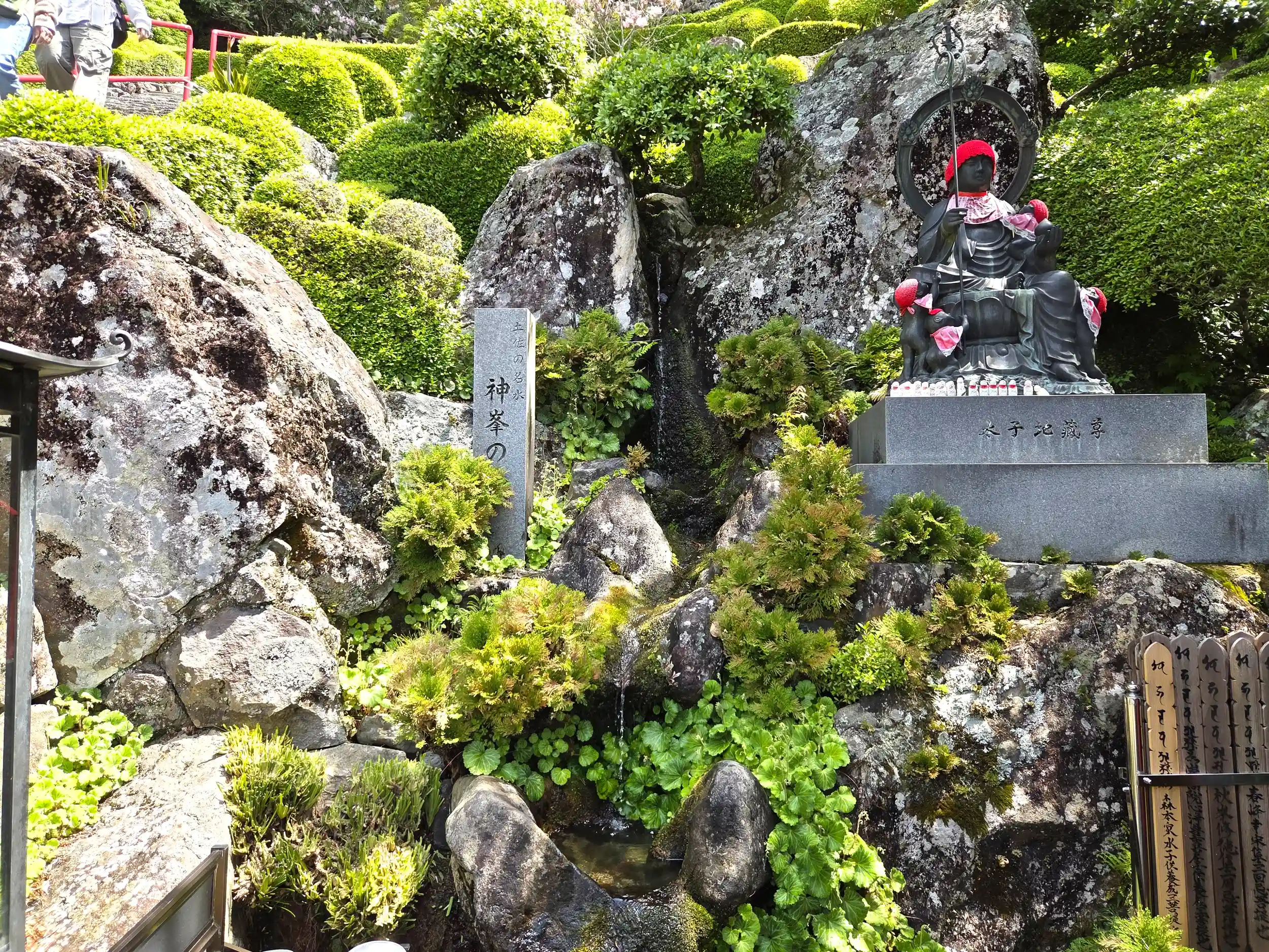 納経所を過ぎて本堂へと向かう石段の右側には「神峯の水」と呼ばれる湧き水がありました。
