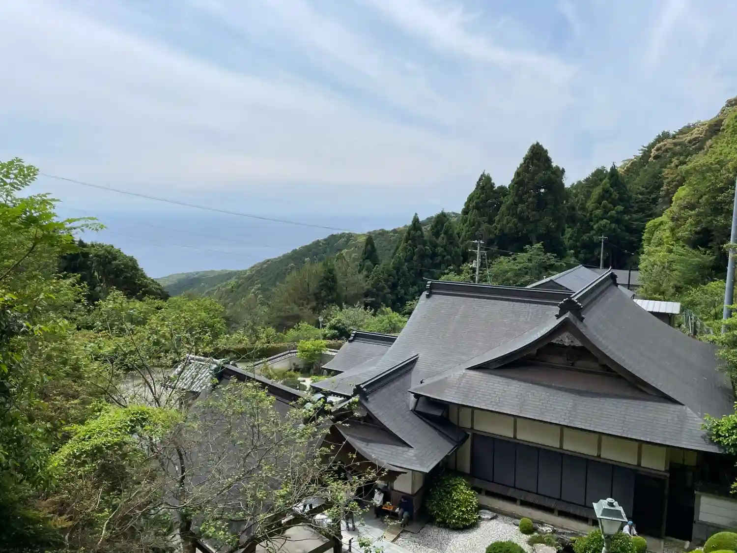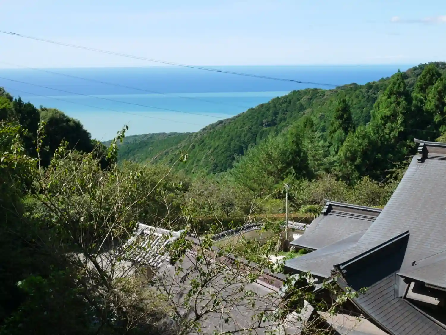 庫裡と納経所を見下ろすと 海も見えます