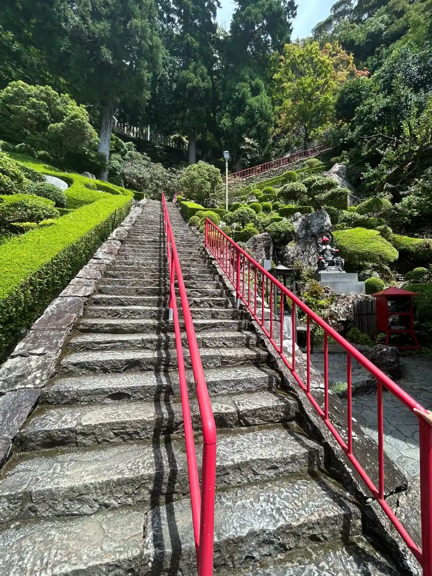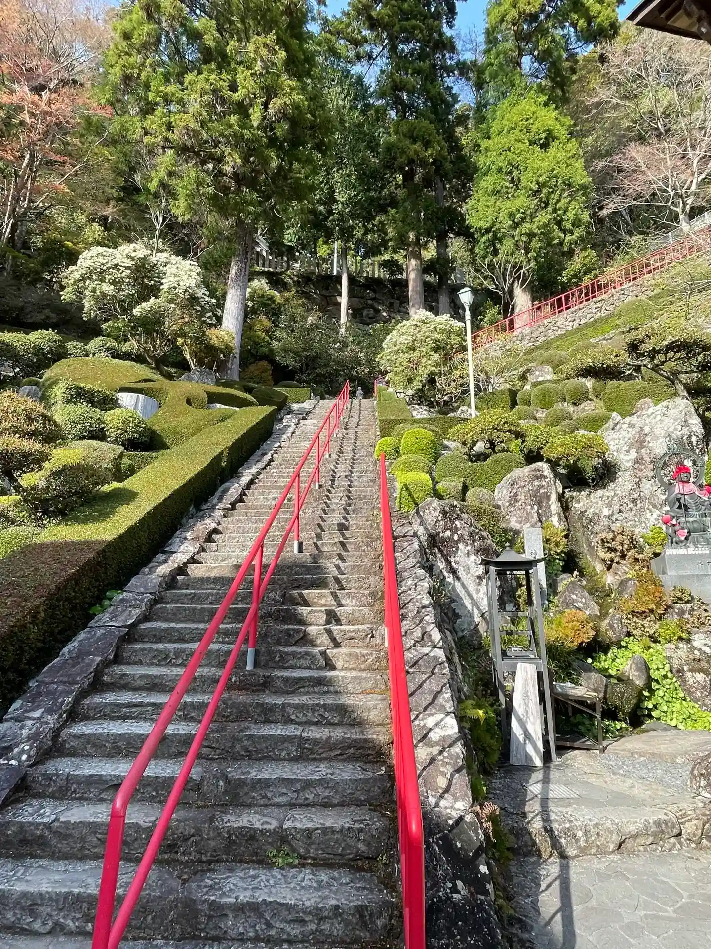 石段の左右には手入れの行き届いた庭園