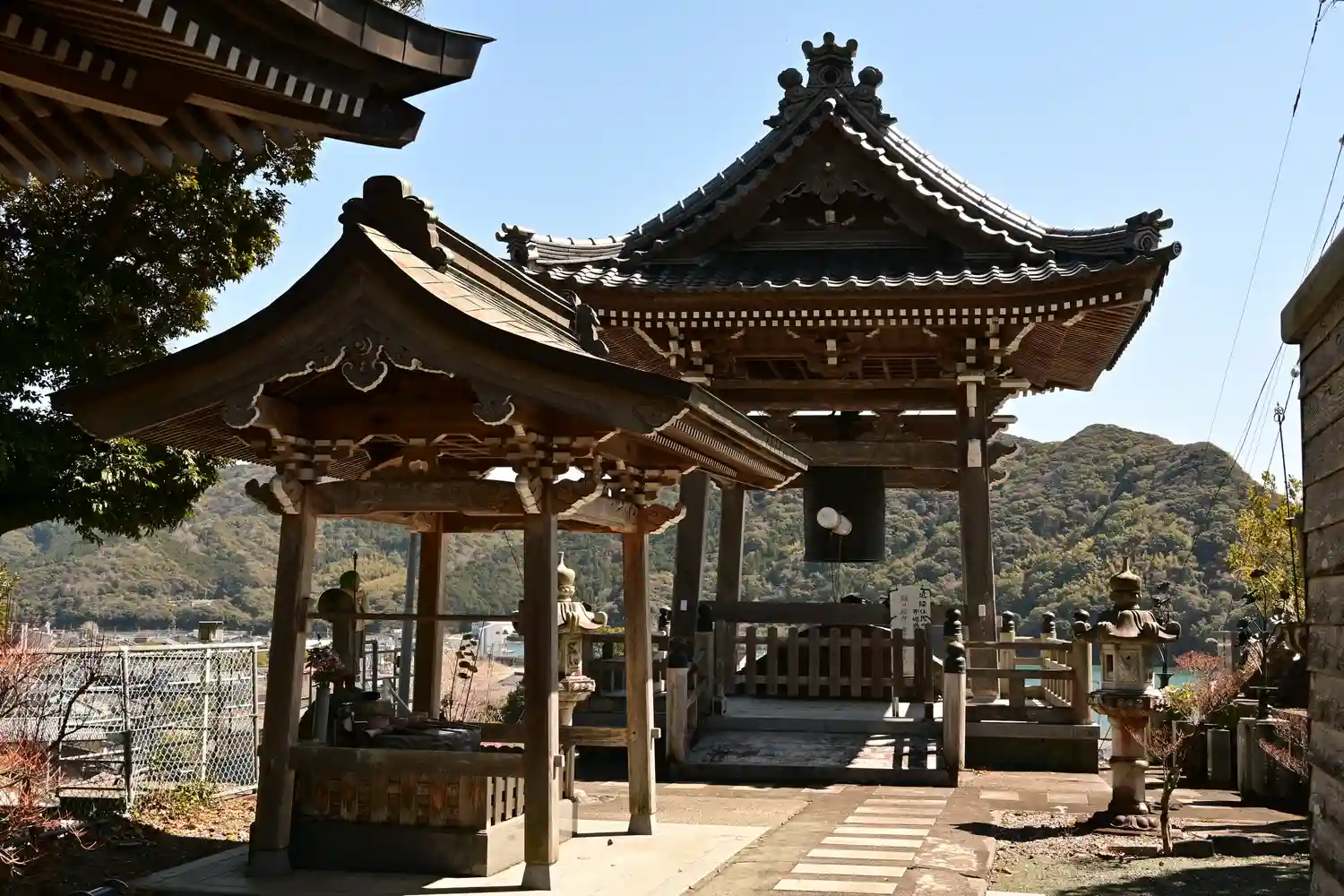 大善寺は、高知県須崎市に位置します。寺院がある丘陵は須崎湾に突き出た岬で、ここには「波の二つ石」と呼ばれる二つの巨石がありました。ここを通る際には、通常は丘陵を越えて通行しますが、干潮時は二つ石の端を通行していました。しかし、ここは「土佐の親不知」とも呼ばれる難所で突然の大波にさらわれる海難事故が絶えませんでした。815(弘仁6)年、弘法大師が須崎を訪れた際、この話を聞き、海難死亡者の菩提を弔い交通安全を祈願しました。その後、ここに大師堂が結ばれたとされています。