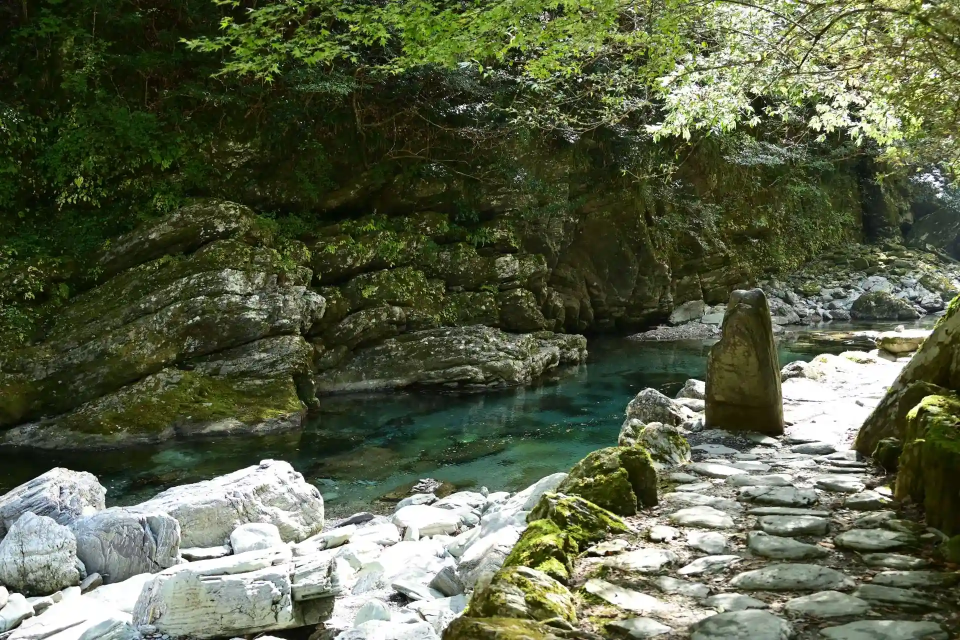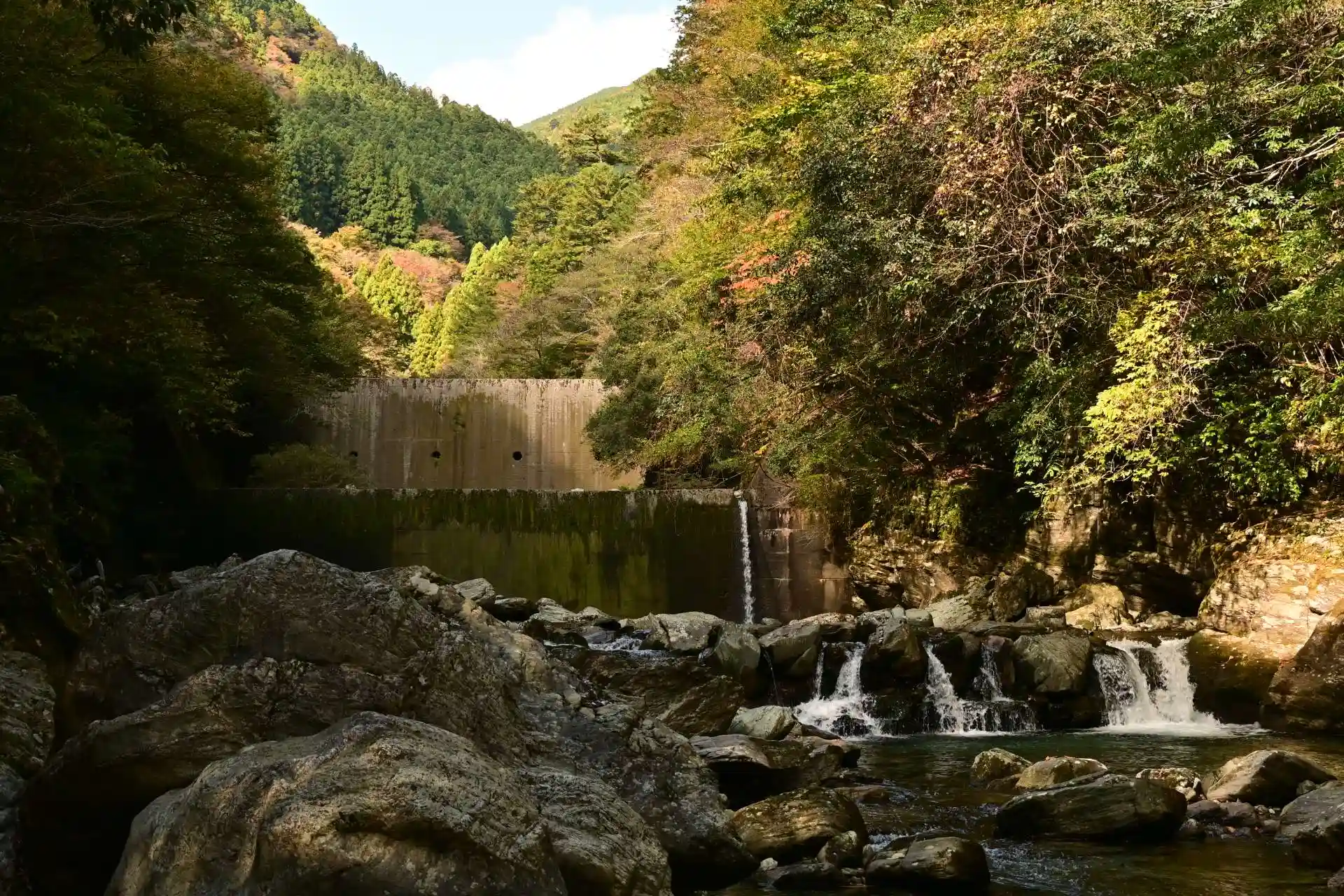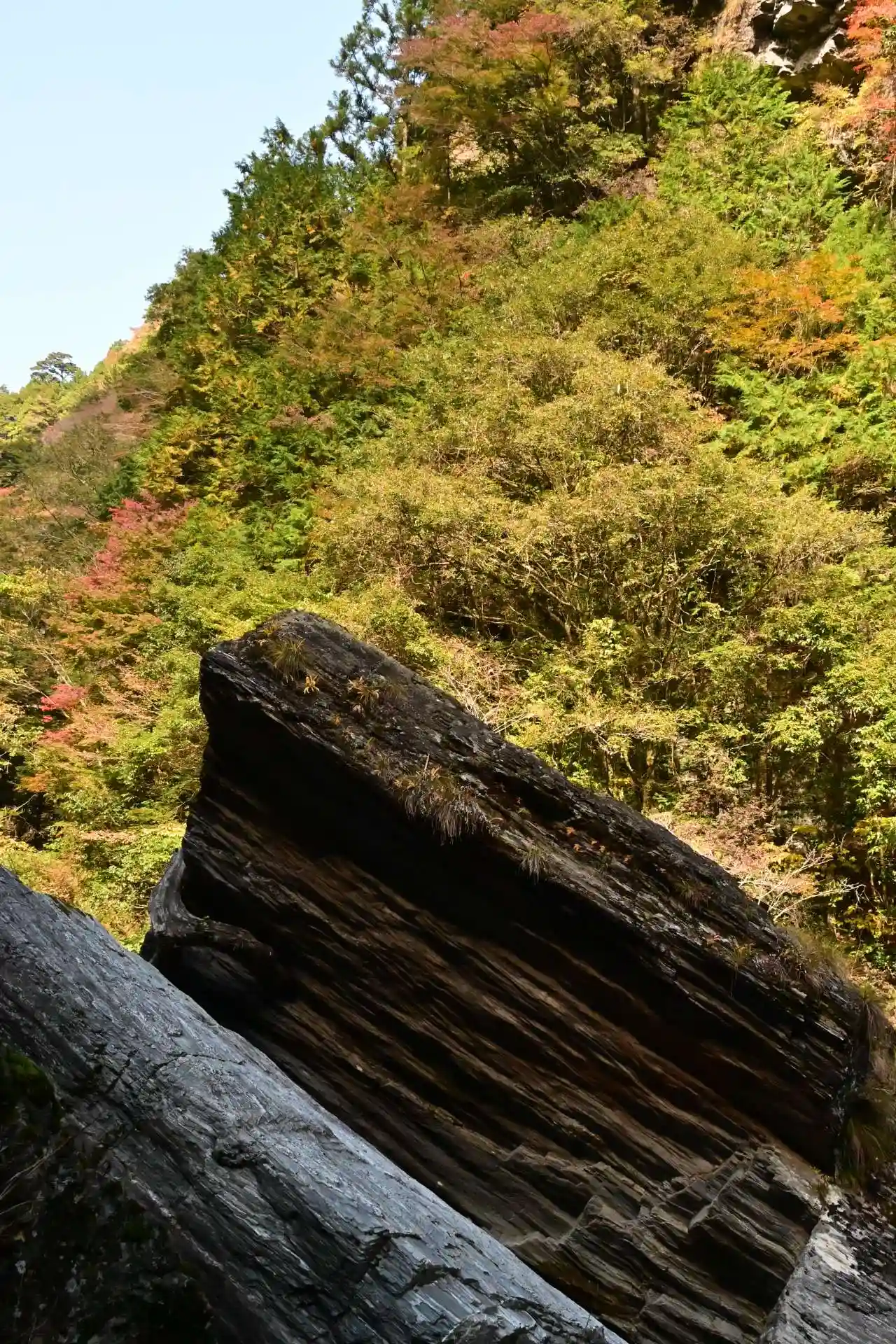 安居渓谷は、仁淀ブルーとして知られています。紅葉の季節に訪ねました。