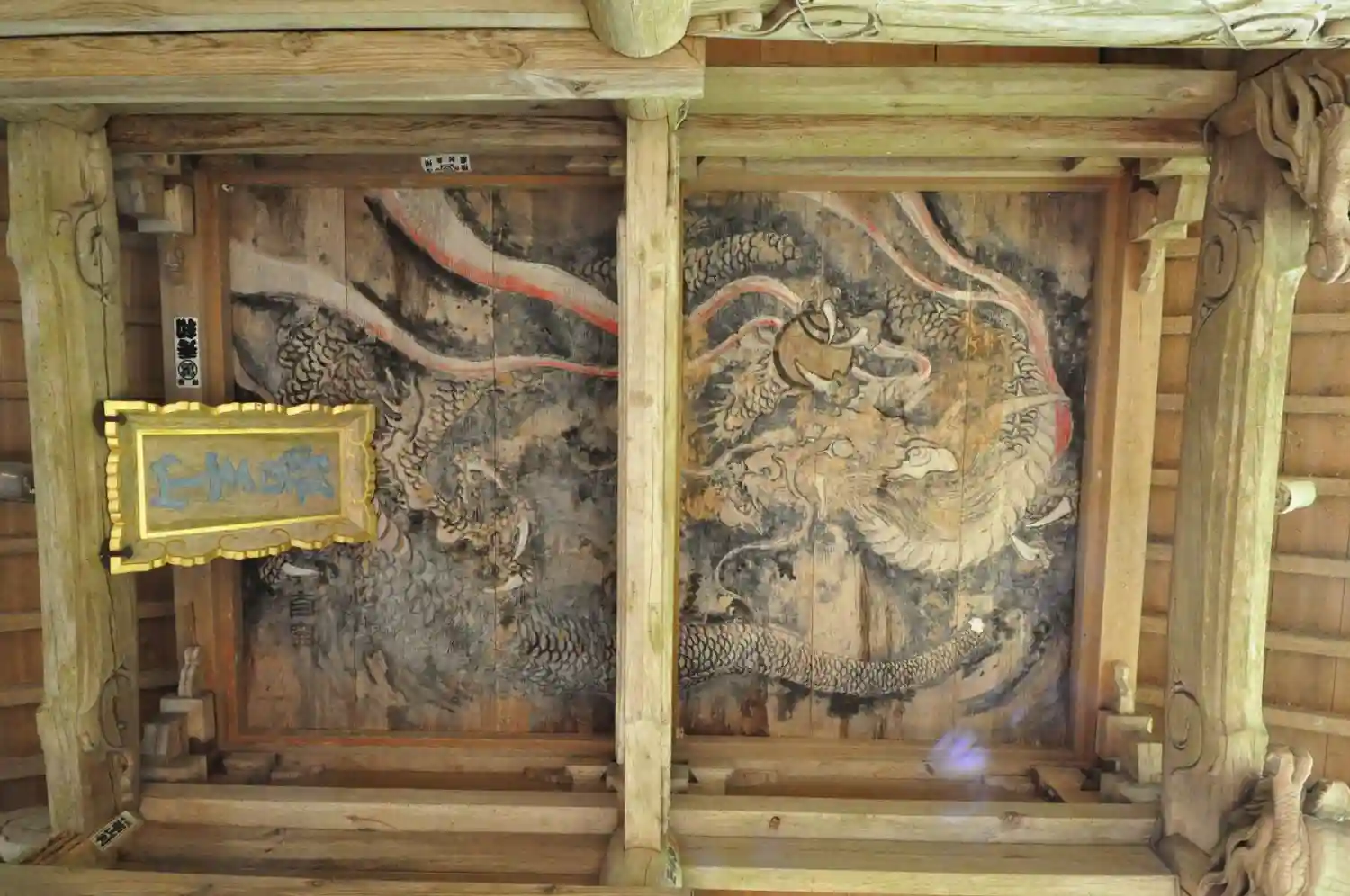 仁王門の天井には、龍が描かれている。1900(明治33)年清瀧寺の仁王門建立に際し、久保南窓(くぼなんそう)が揮毫。